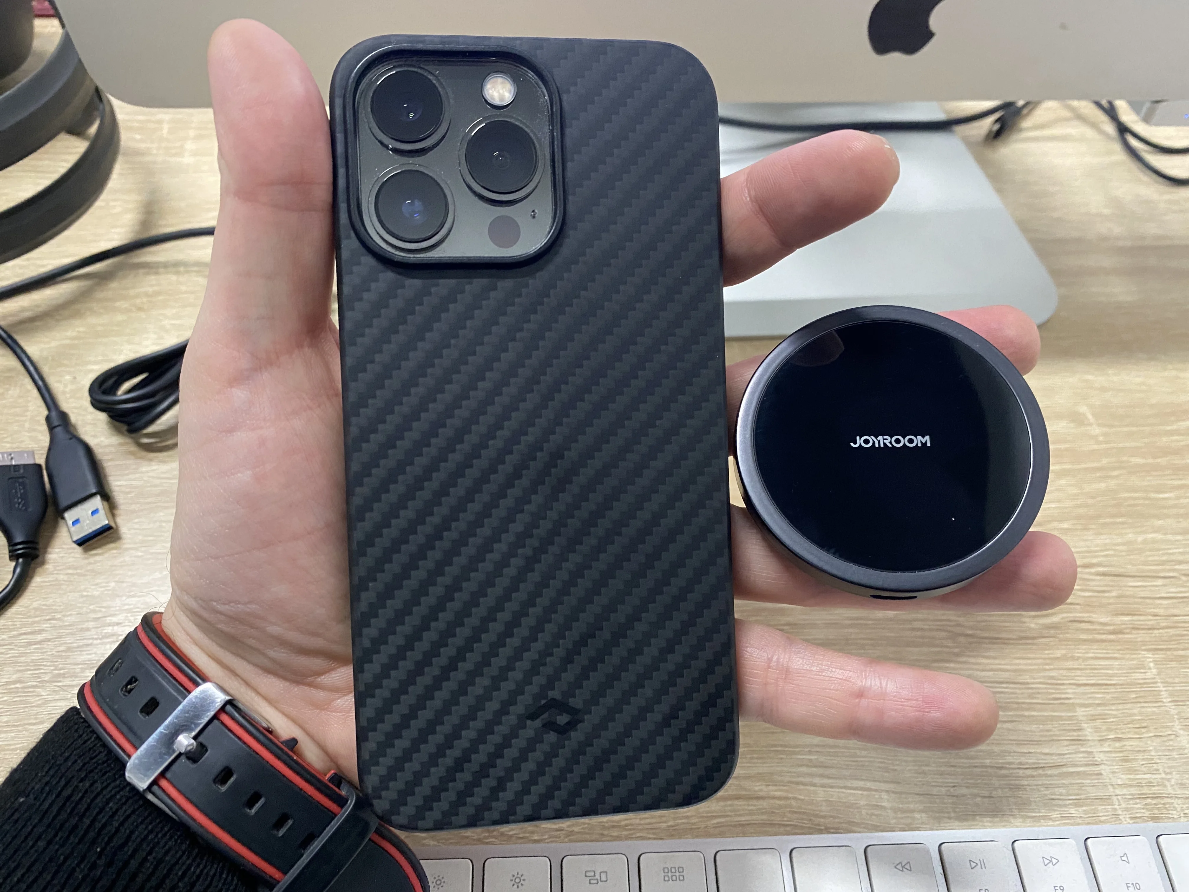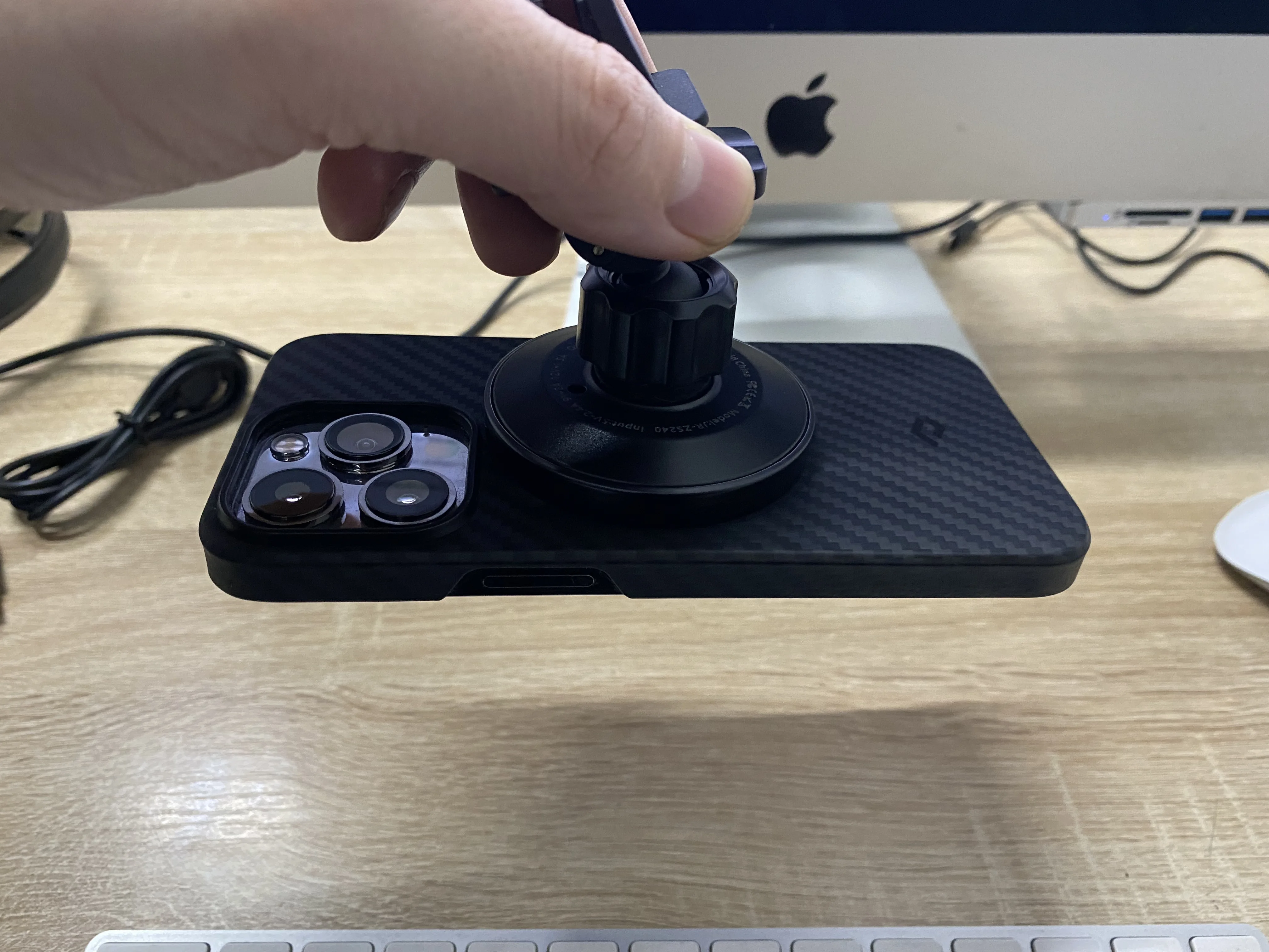 Good quality holder. Strong Magnet, iPhone 13 pro with original Pitaka case holds.