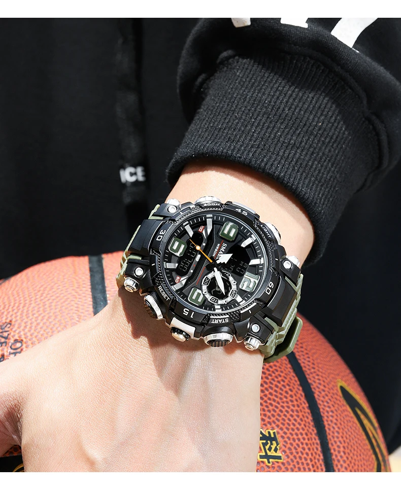 Quartz watch is very good, there is a backlight, stopwatch, date and time, alarm clock. Seemingly massive, work great. Have a comfortable silicone strap. This is a good option for athletes, waterproof. Hand with them comfortable. Despite the visually large size, do not interfere and do not cause discomfort. It is clear that the product is branded. There is an instruction manual in the kit. The watch is fully consistent with the store's description and photo. I put 5 stars. I recommend everyone to buy.