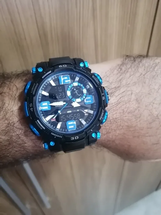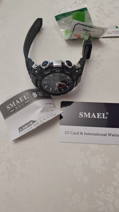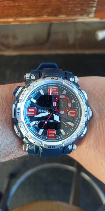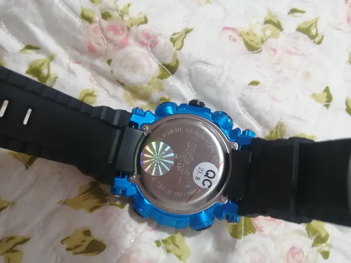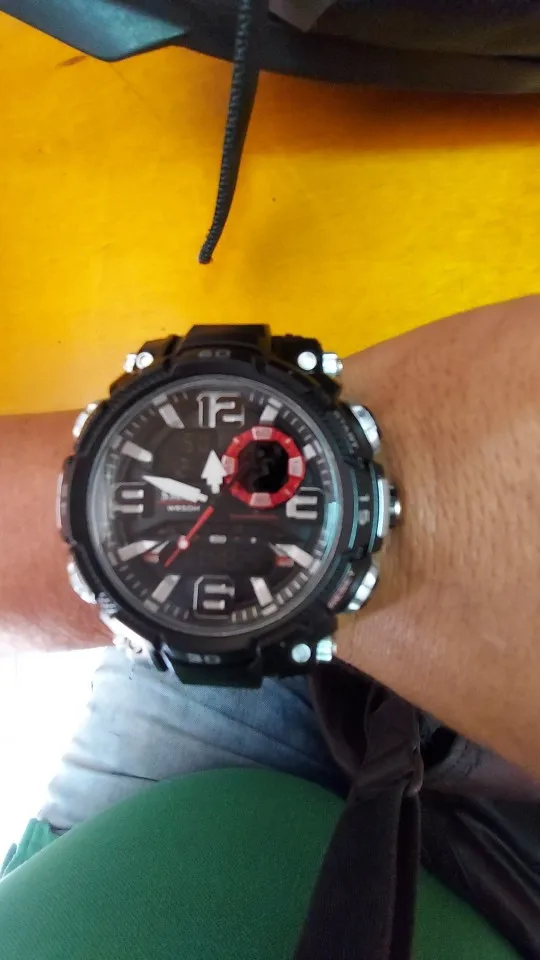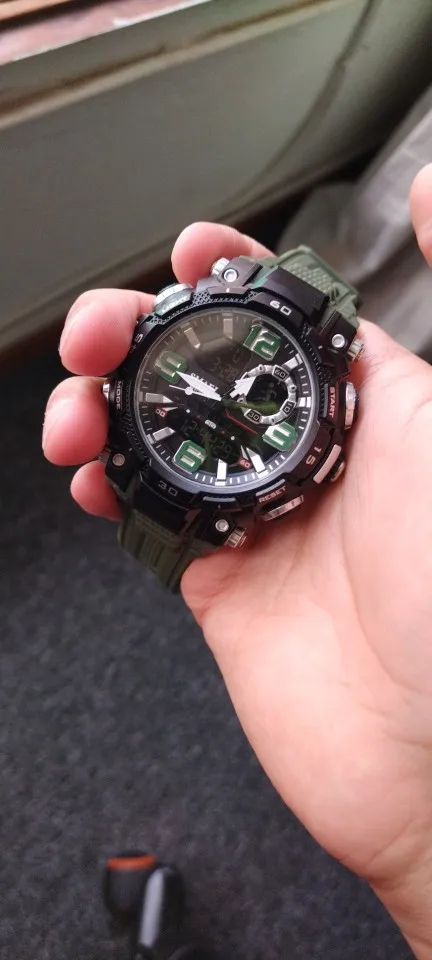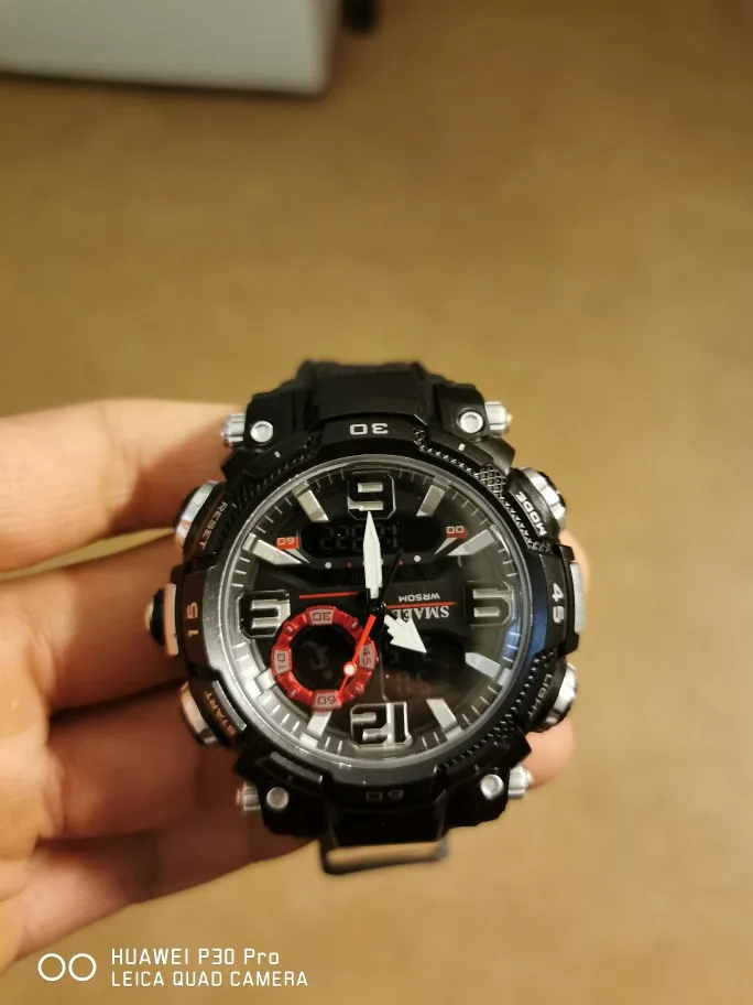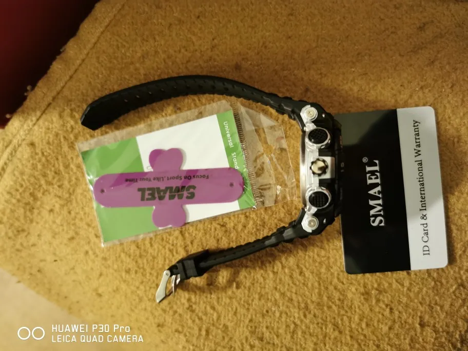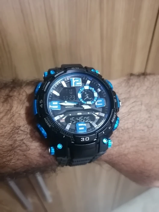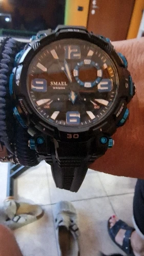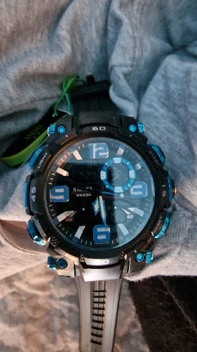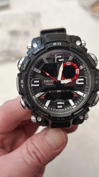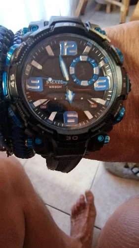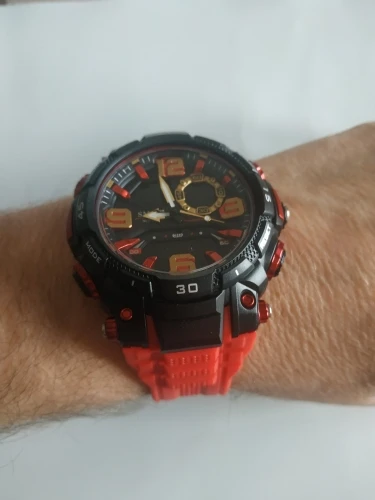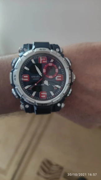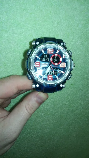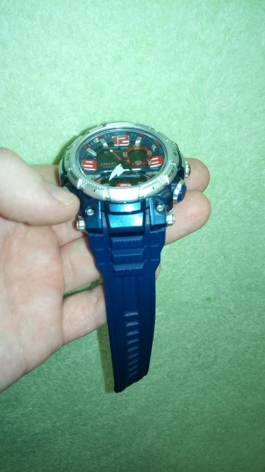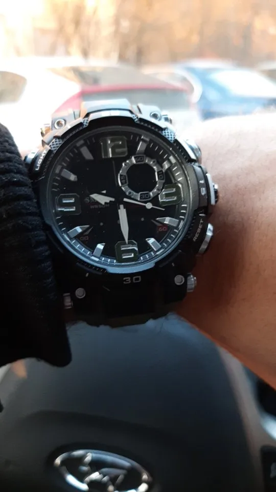 Quartz watch is very good, there is a backlight, stopwatch, date and time, alarm clock. Seemingly massive, work great. Have a comfortable silicone strap. This is a good option for athletes, waterproof. Hand with them comfortable. Despite the visually large size, do not interfere and do not cause discomfort. It is clear that the product is branded. There is an instruction manual in the kit. The watch is fully consistent with the store's description and photo. I put 5 stars. I recommend everyone to buy.