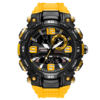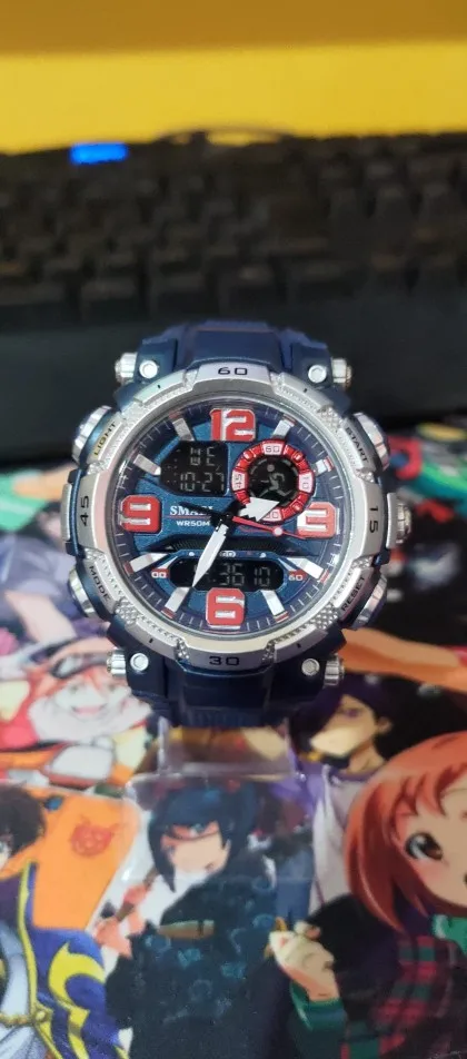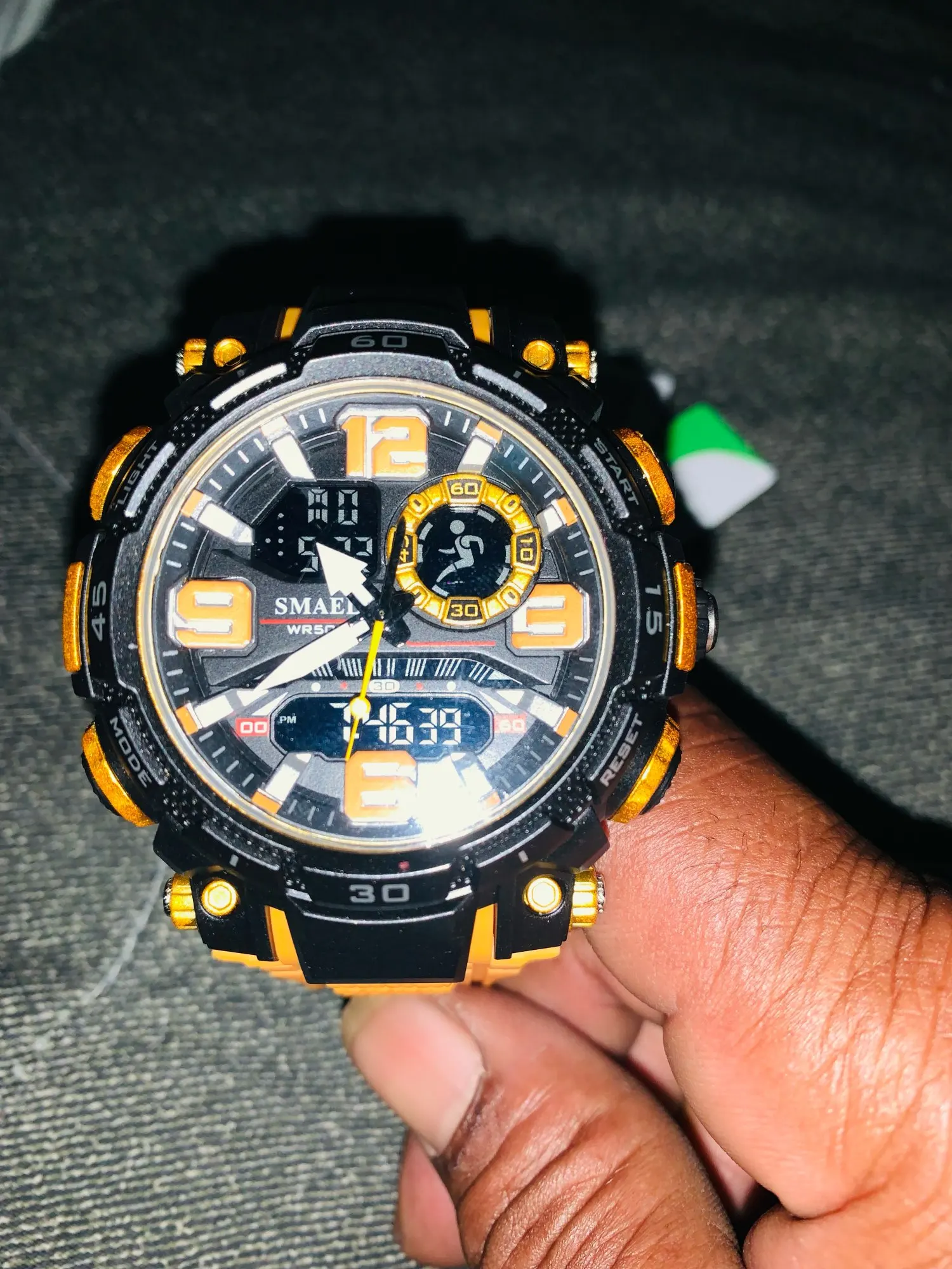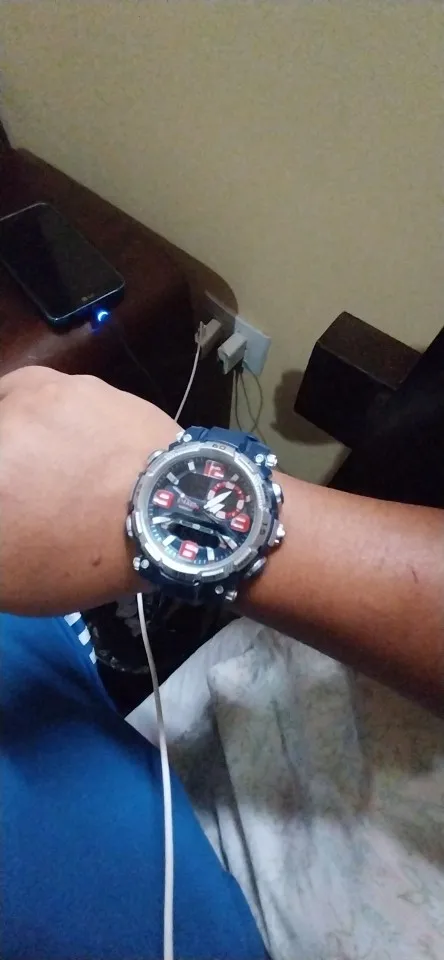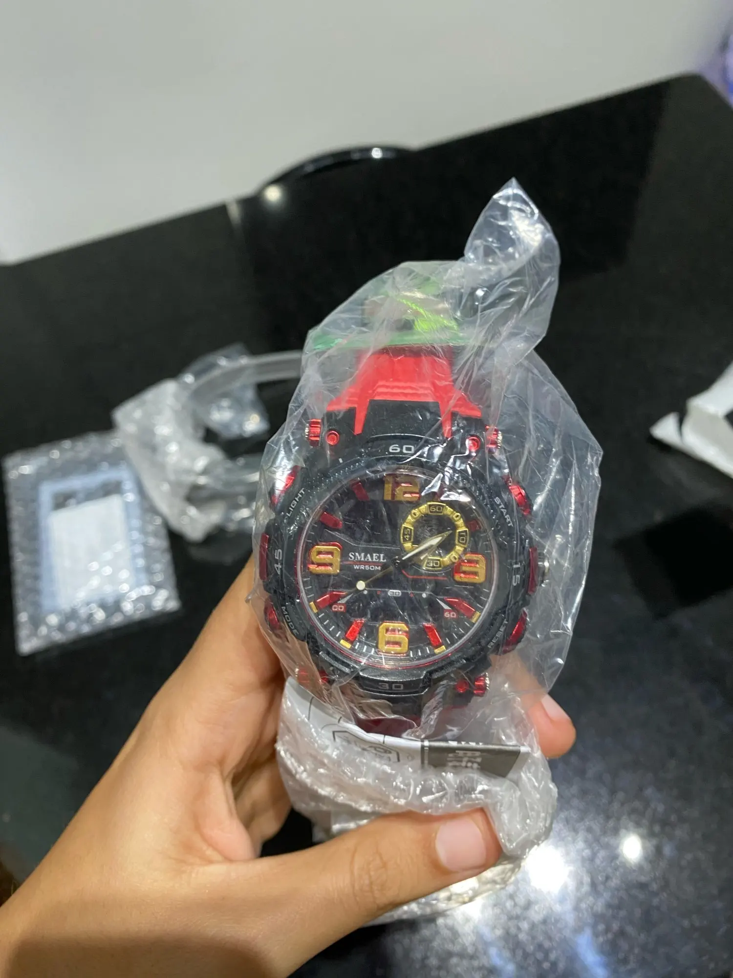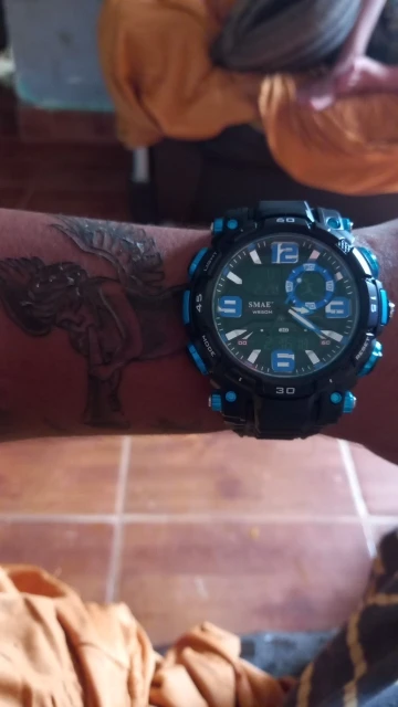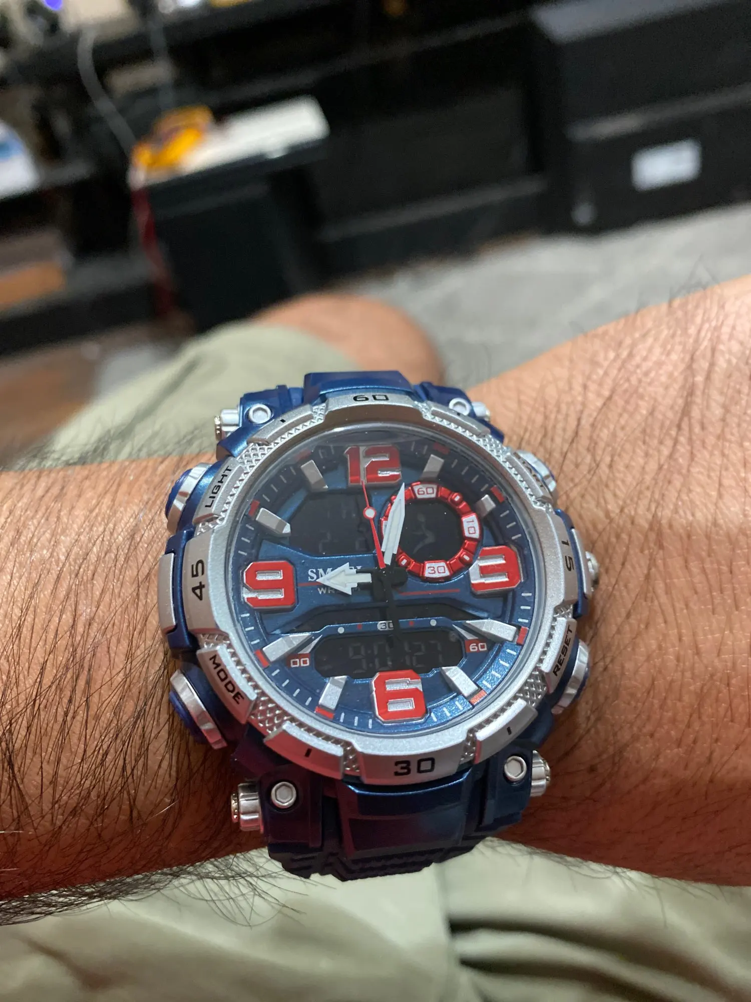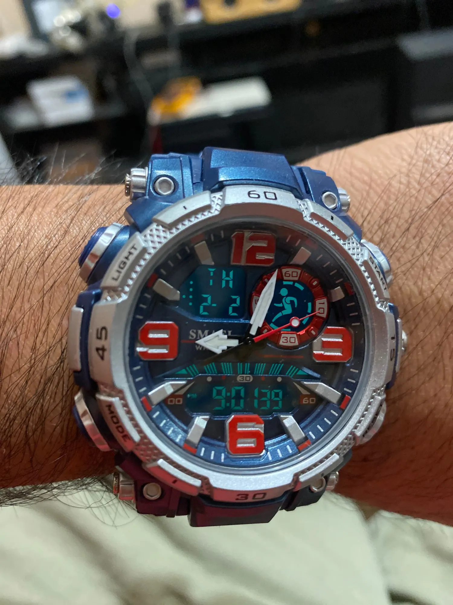 Quartz watch is very good, there is a backlight, stopwatch, date and time, alarm clock. Seemingly massive, work great. Have a comfortable silicone strap. This is a good option for athletes, waterproof. Hand with them comfortable. Despite the visually large size, do not interfere and do not cause discomfort. It is clear that the product is branded. There is an instruction manual in the kit. The watch is fully consistent with the store's description and photo. I put 5 stars. I recommend everyone to buy.