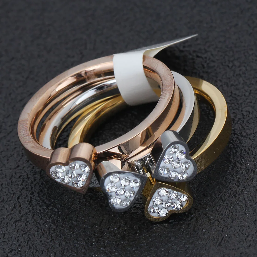 Stainless Steel Jewelry Unique 3in1 Heart Rings For Women