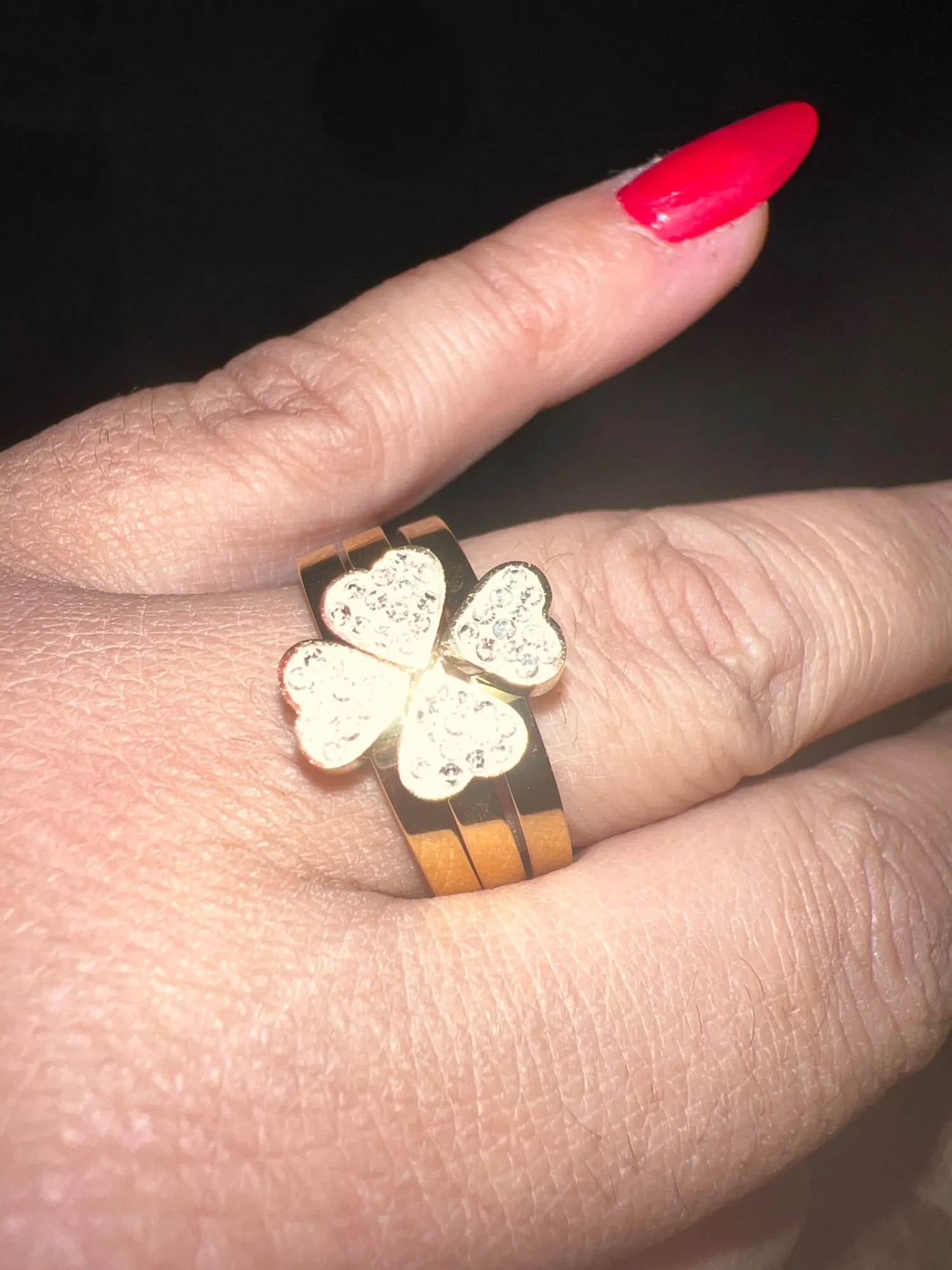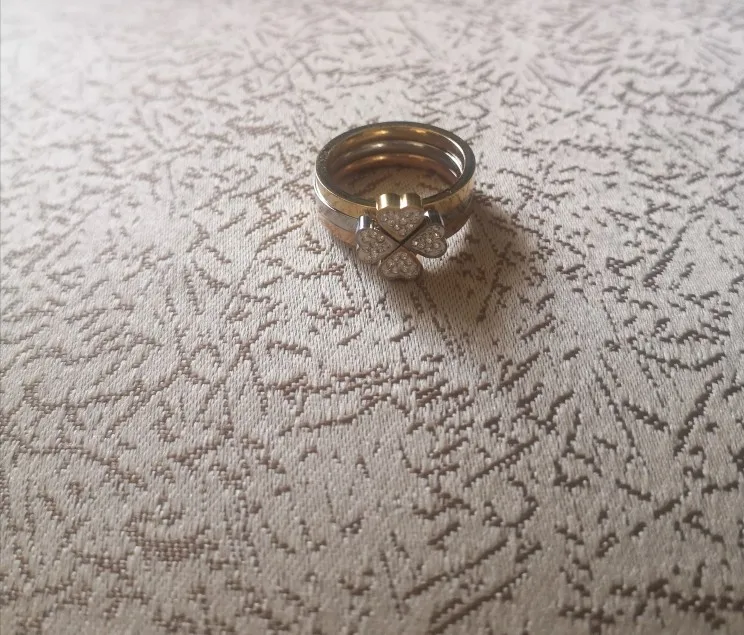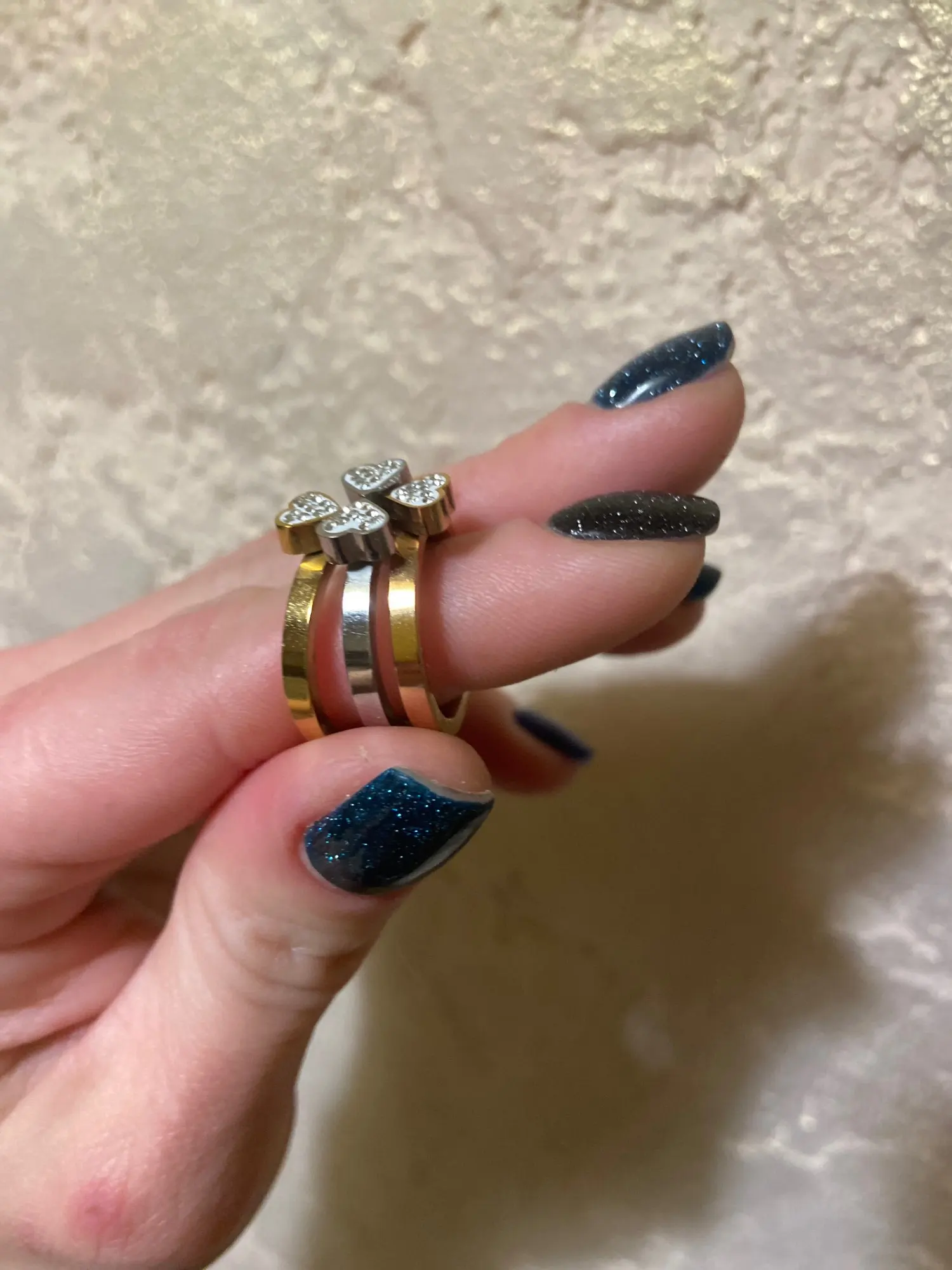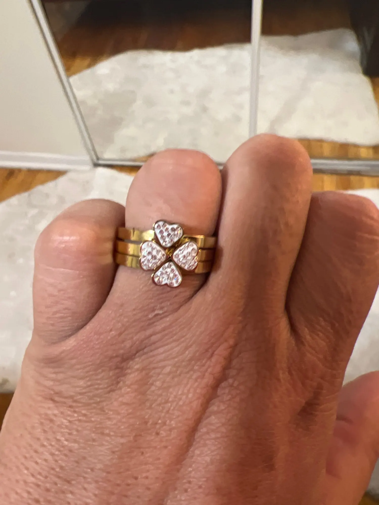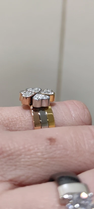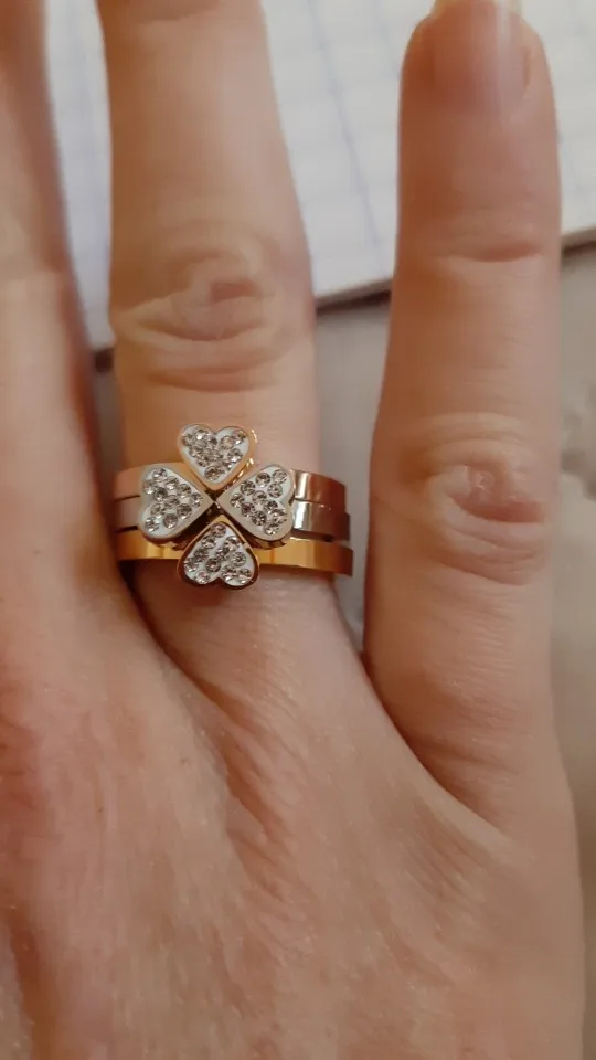 Lovely ring that is 3 in 1 PU is looks like one but they are 3 pieces that form Clover so you can share with 3 friends for example and it is a wonderful gift of friendship! Now it's not true about stainless steel. But generally a 5 star!