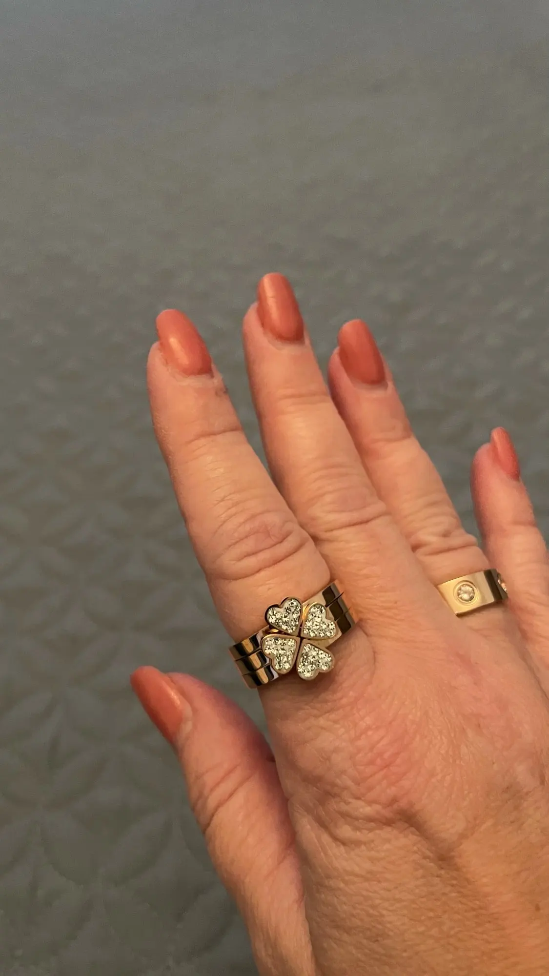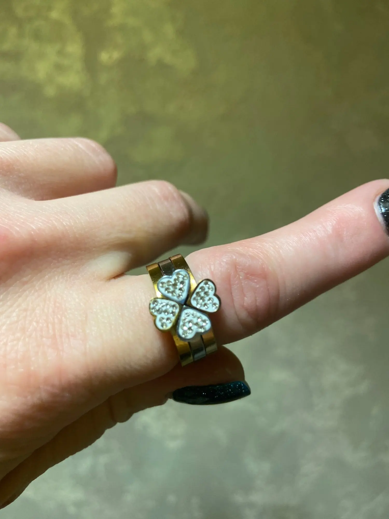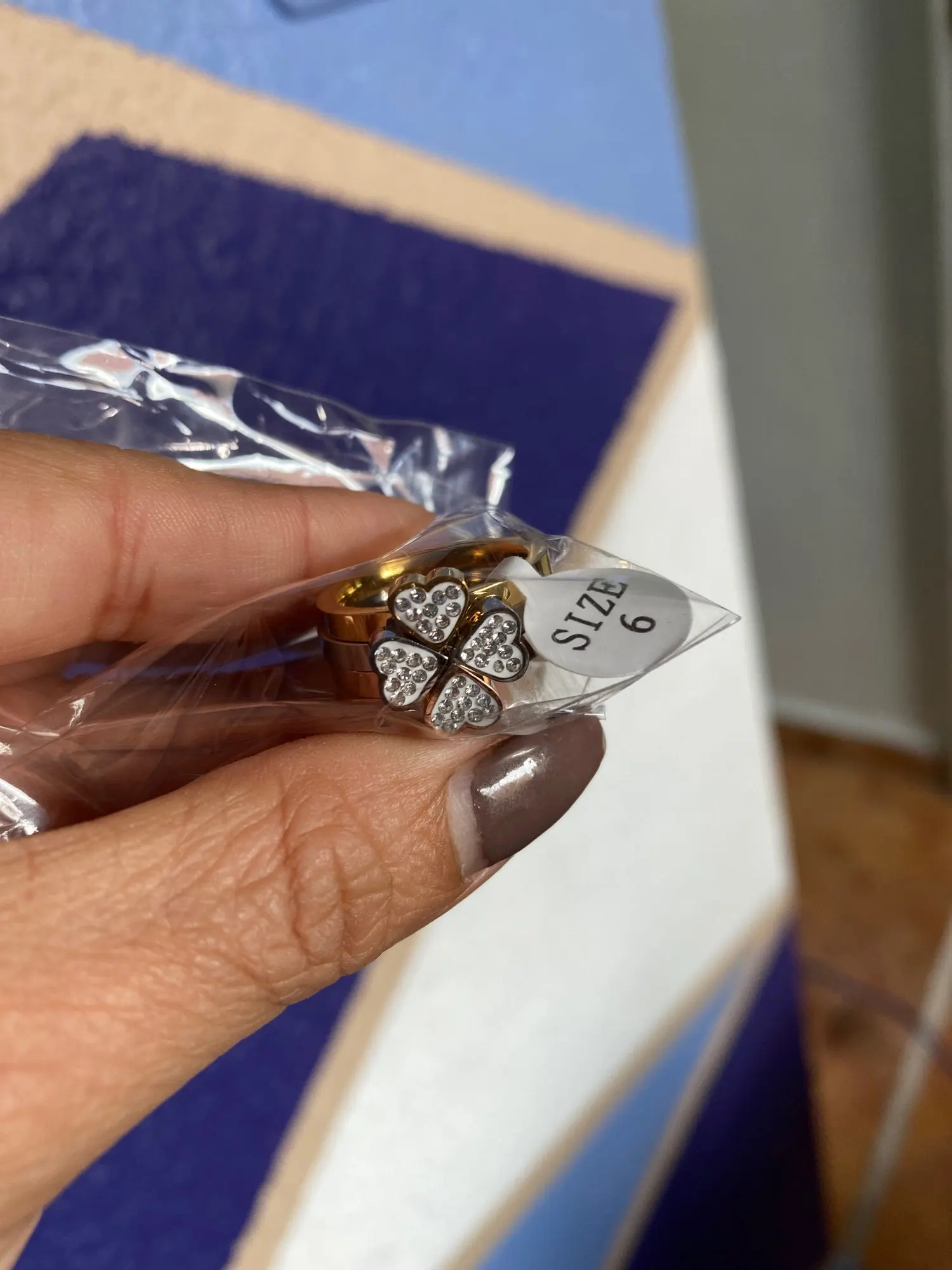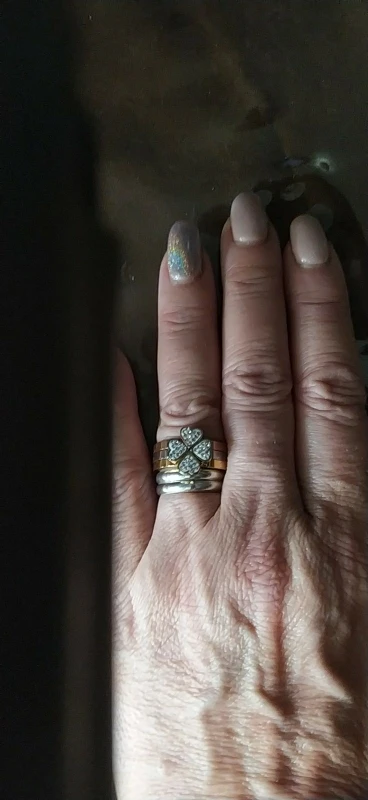 Lovely ring that is 3 in 1 PU is looks like one but they are 3 pieces that form Clover so you can share with 3 friends for example and it is a wonderful gift of friendship! Now it's not true about stainless steel. But generally a 5 star!
