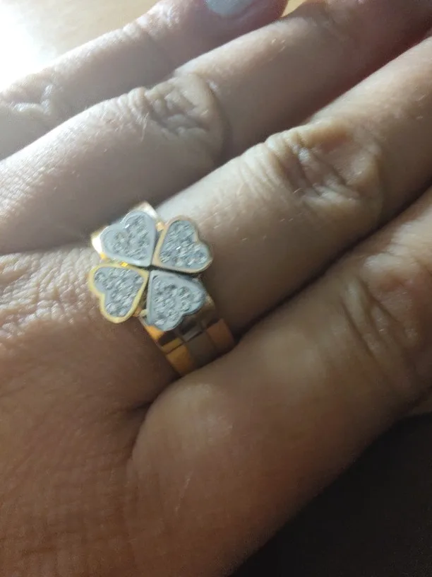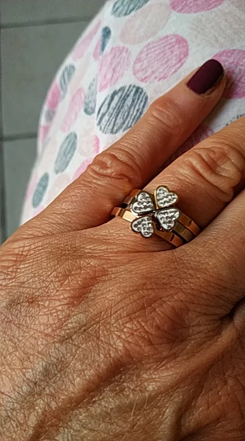 Very pleasant surprise. Only after opening paczuszki, ring with beautiful koniczynką proved three pierścionkami. 2 with serduszkami and one with łezkami. Very I am happy and Zona even more