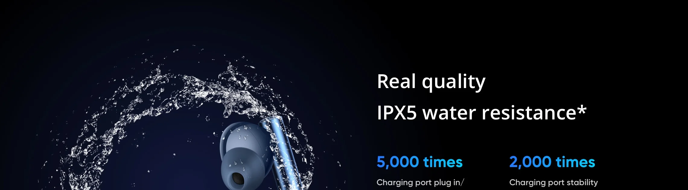 Real qualityIPX5 water resistance*