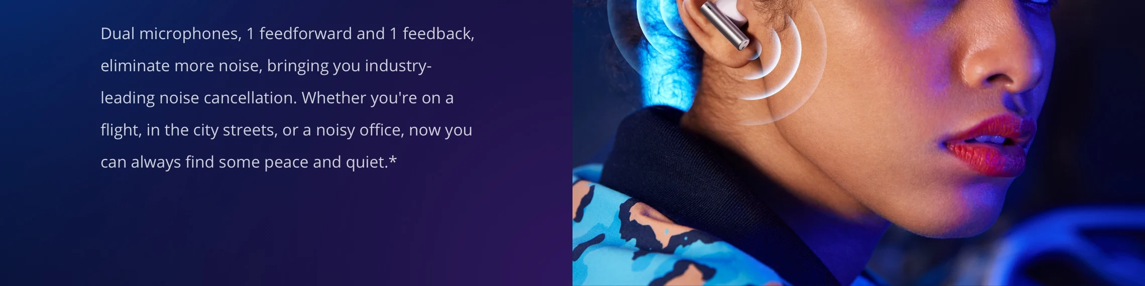 Dual microphones, 1 feedforward and 1 feedback, eliminate more noise, bringing you industry-leading noise cancellation. Whether you’re on a flight, in the city streets, or a noisy office, now you can always find some peace and quiet.*![]()
