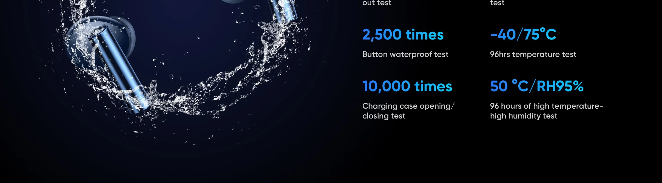 10,000 times Charging case opening/closing test | 2,000 timesCharging port stability test |