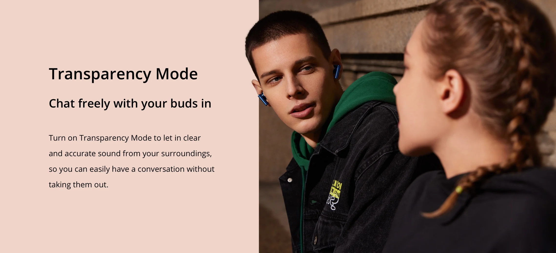 Turn on Transparency Mode to let in clear and accurate sound from your surroundings,