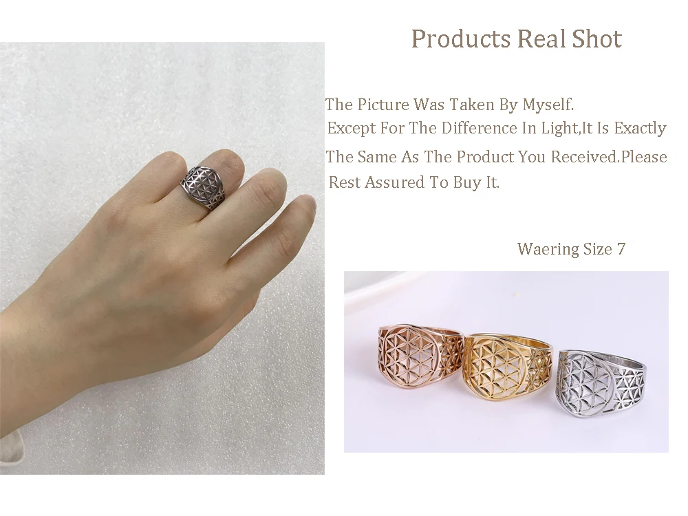 Attention the color of the steel is not the same as on the store's photograph, it is darker and less bright, damage, we see the difference with my lotus flower ring on the 3 em photo. This does not remove the nice work of the ring, no defect