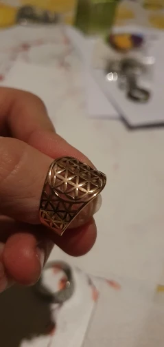 Attention the color of the steel is not the same as on the store's photograph, it is darker and less bright, damage, we see the difference with my lotus flower ring on the 3 em photo. This does not remove the nice work of the ring, no defect