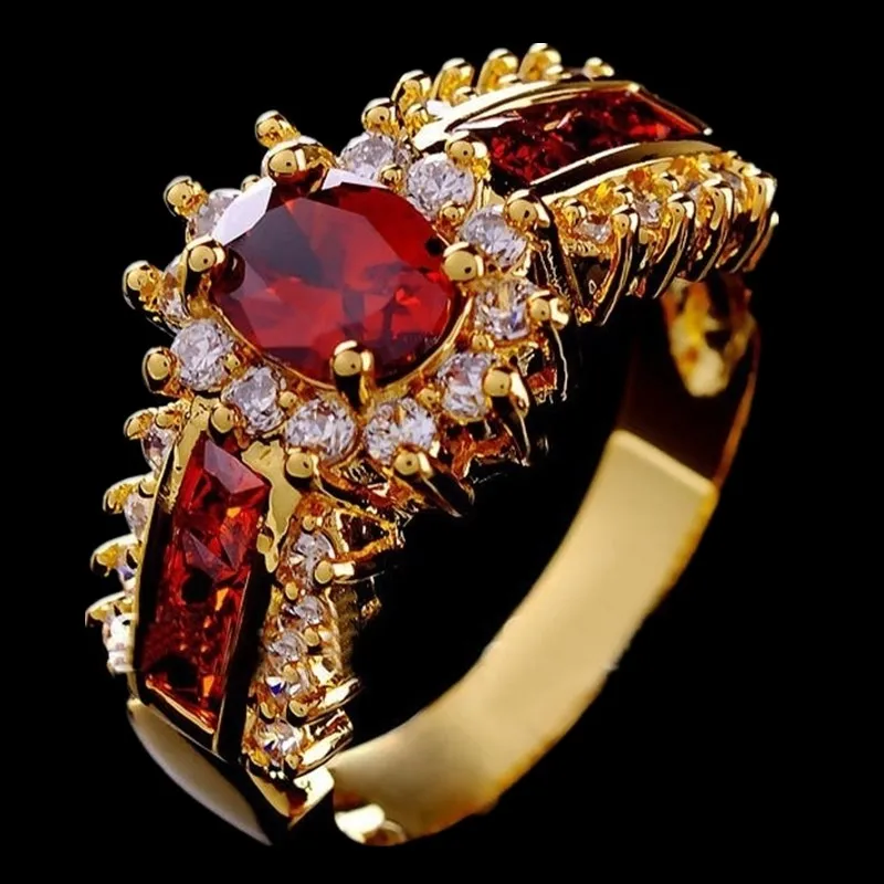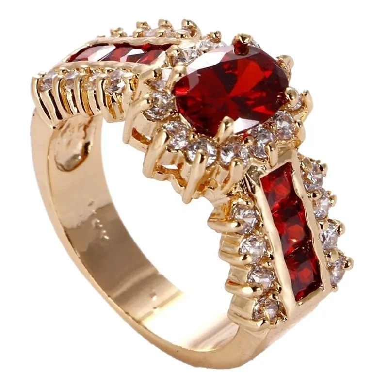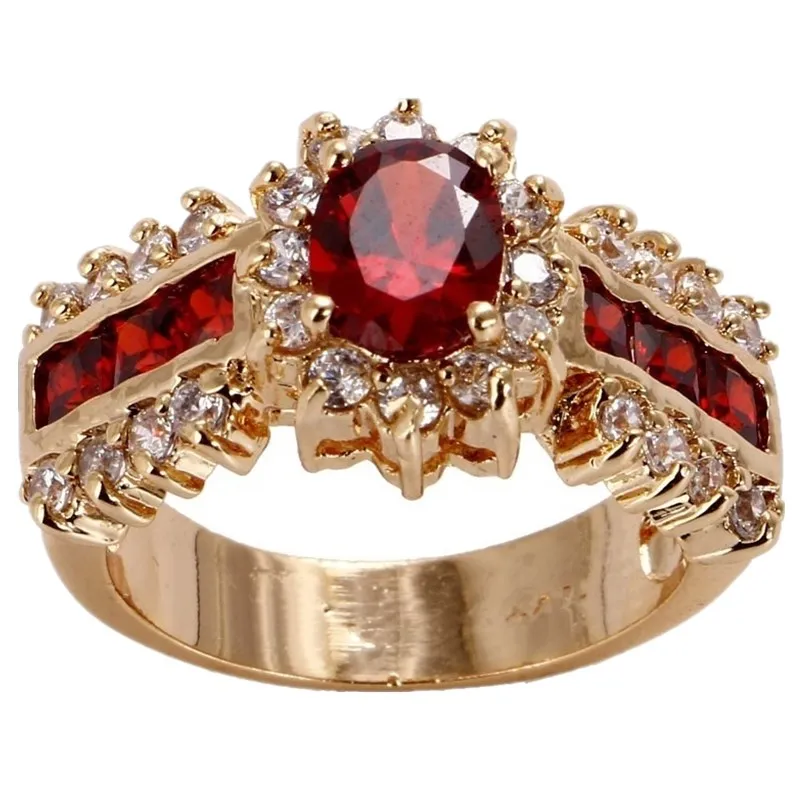 12 size, metal, stones more with orange shade, rather orange than red, quality