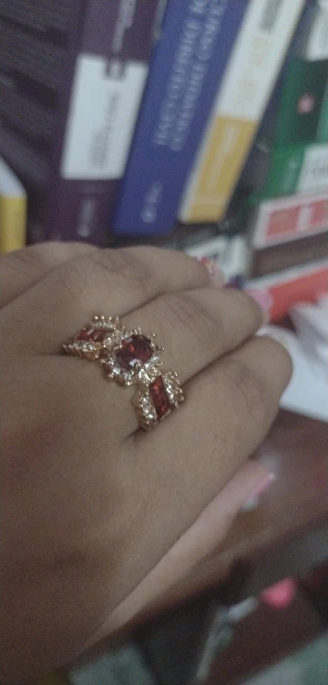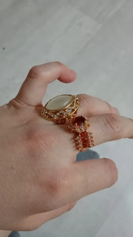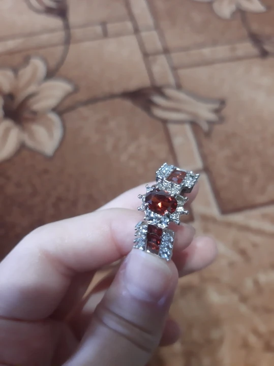 The product came exactly in time, the appearance is completely the same as the description, on the sides of the rhinestones, in the center of the pebbles surrounded by 8 cubic zirconia, cubic zirconia about Quality later I will complement in the review...