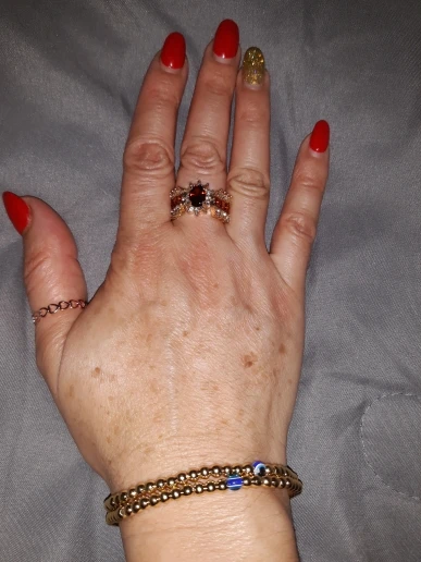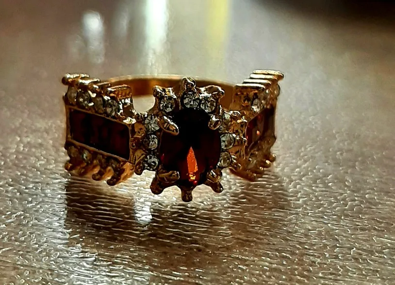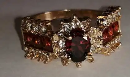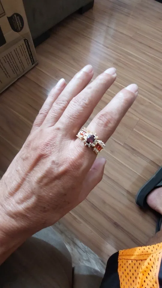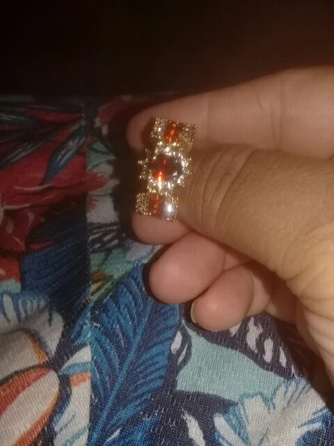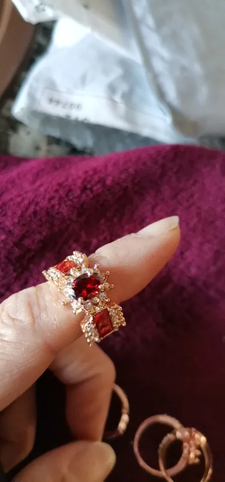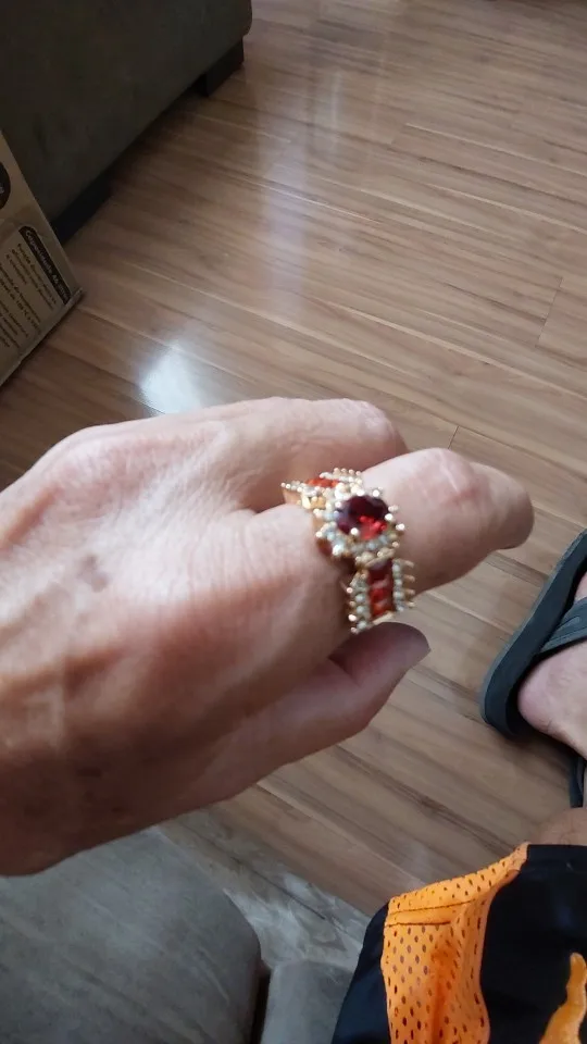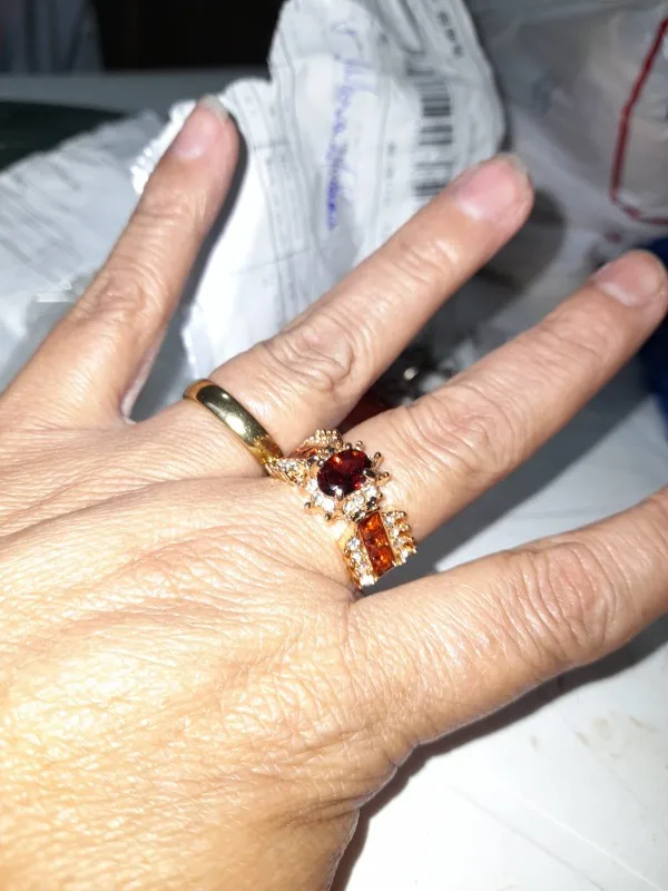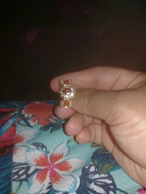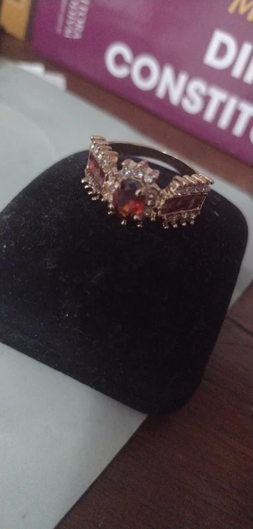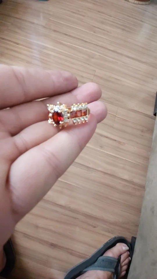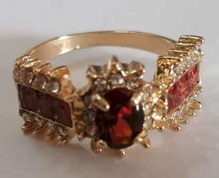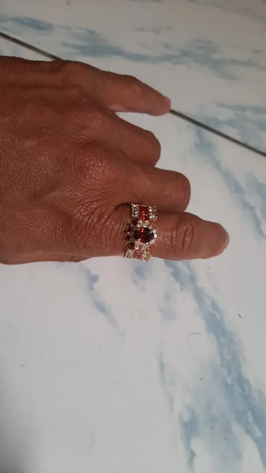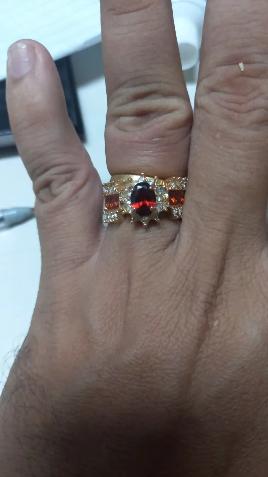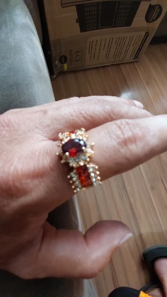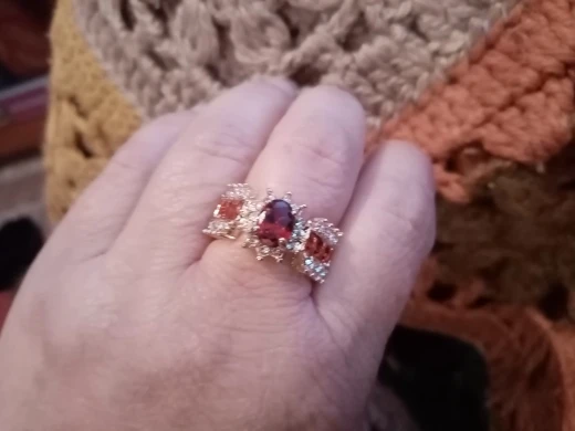 12 size, metal, stones more with orange shade, rather orange than red, quality