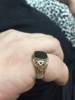 Ring as 585 Gold. ordered 12 size, in our Russian 22. But... the ring is small in size. The seal is not massive, as we used to see, rather average. And as seen in the photo, the ring is not round, not even. In the photo of the store of course and grinding is better. Shipping fast.