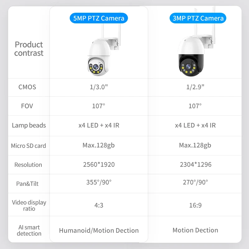 *PTZ: rotates 270 degrees left and right and rotates 90 degrees vertically;