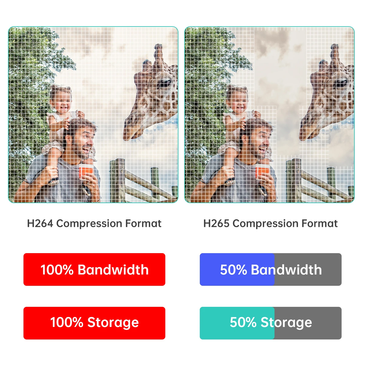 H.265 More Clear , HD resolution offer you best image quality in a lower bit rate, save storage space.