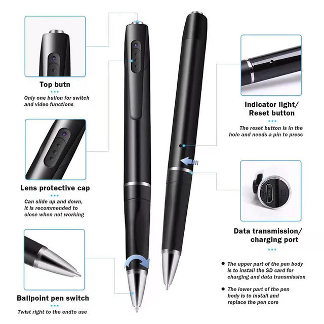 ▪It is not only a pen that can write, but also a mini camera. It can work under any circumstances, not easy to be found, easy to carry, and easy to use. There is also a clip on the pen to fix the position.