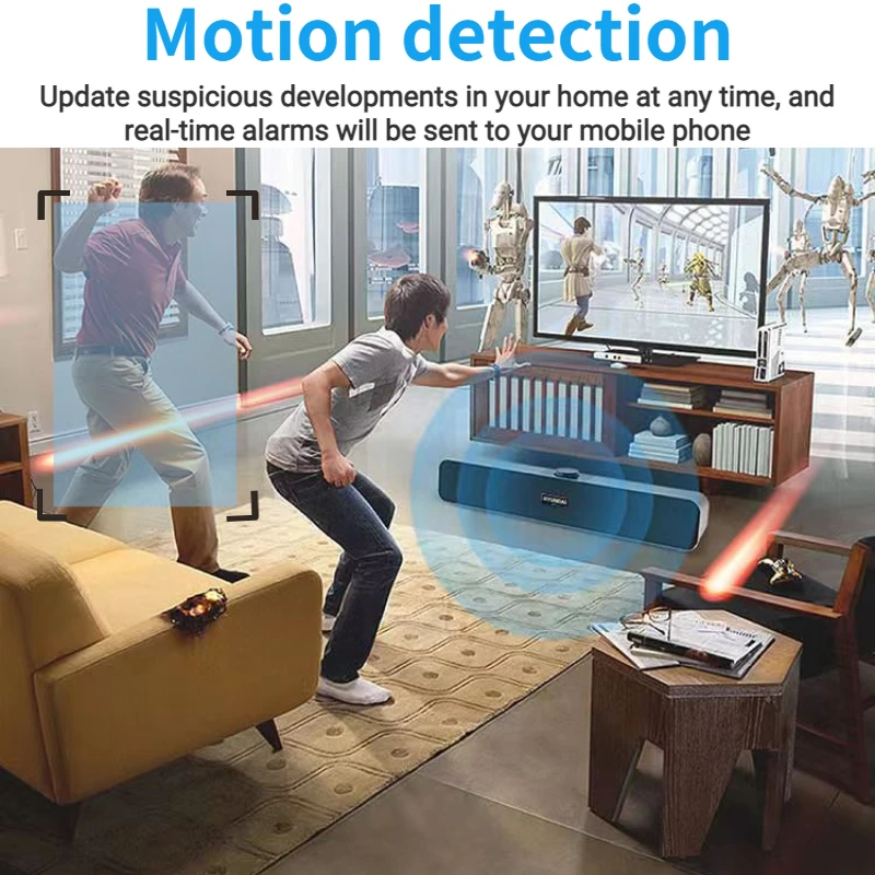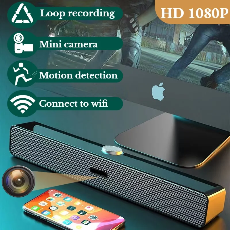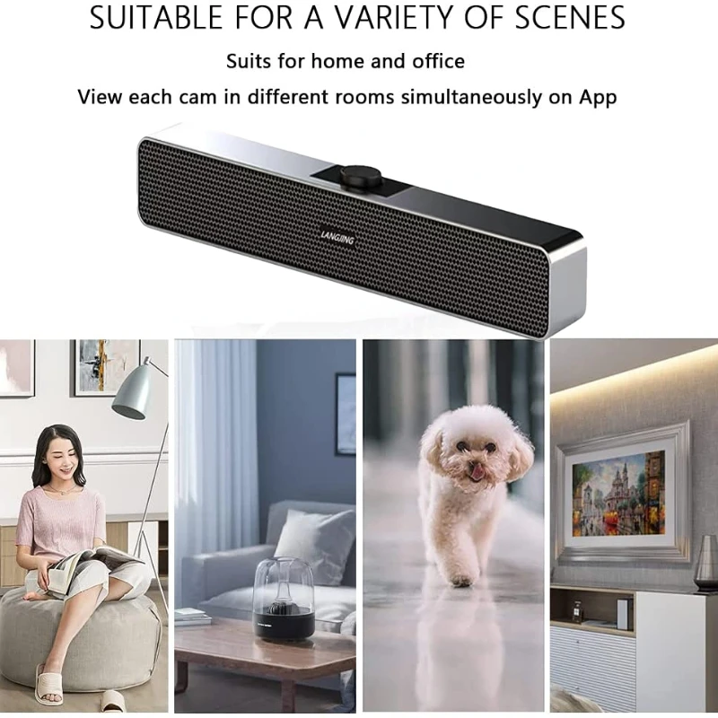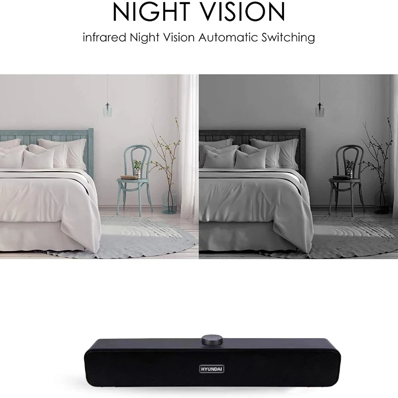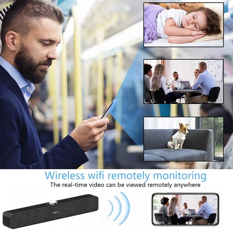 【Speaker Bar Camera】Video and images with Full HD 1080P HD. This WIF speaker camera looks like a normal computer speaker, with an inconspicuous infrared light when recording, so no one can’t see the camera inside. You can use the Bluetooth connection of the mobile phone, or connect to the computer through the provided data cable to play music, and support iOS/android smartphones and computers.