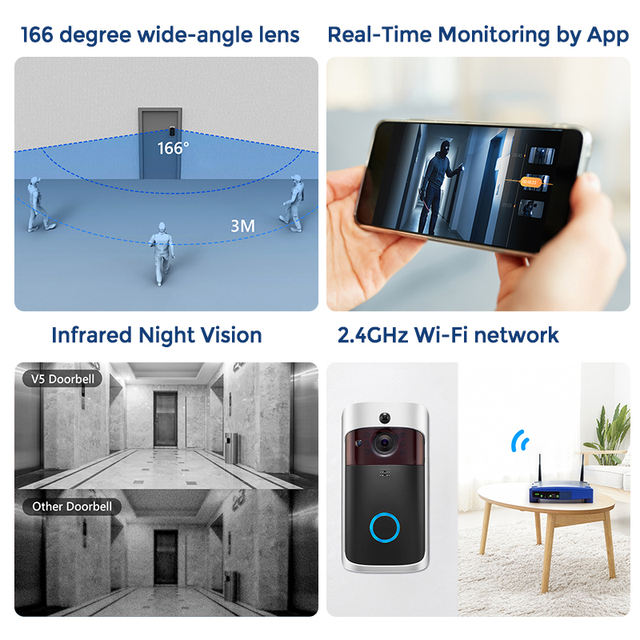 V5 Smart IP Video Intercom WIFI Video Door Phone Door Bell WIFI Doorbell Camera IR Alarm Wireless Security Camera