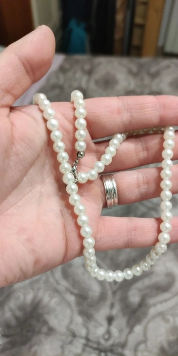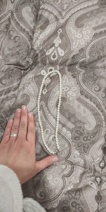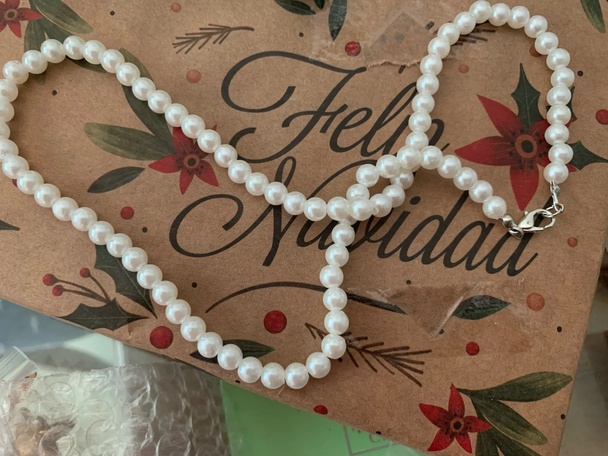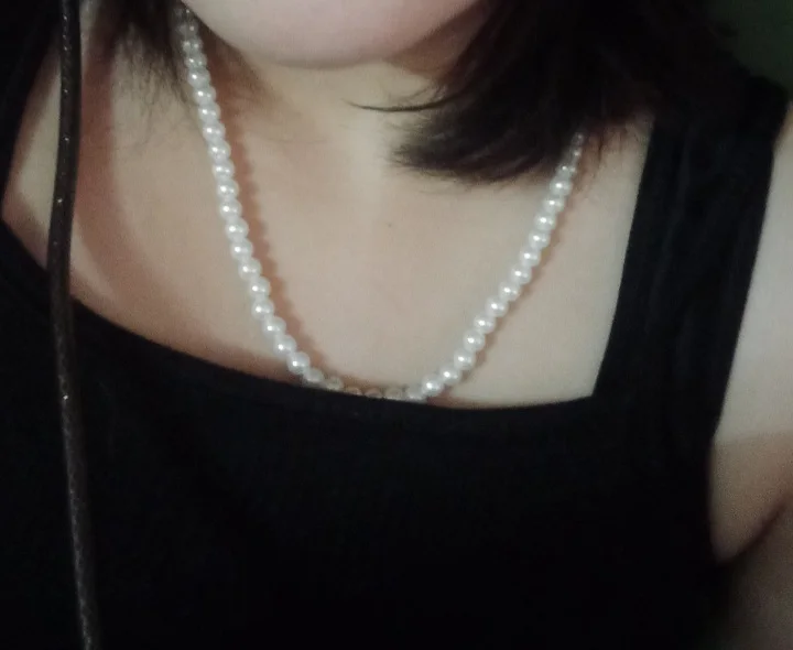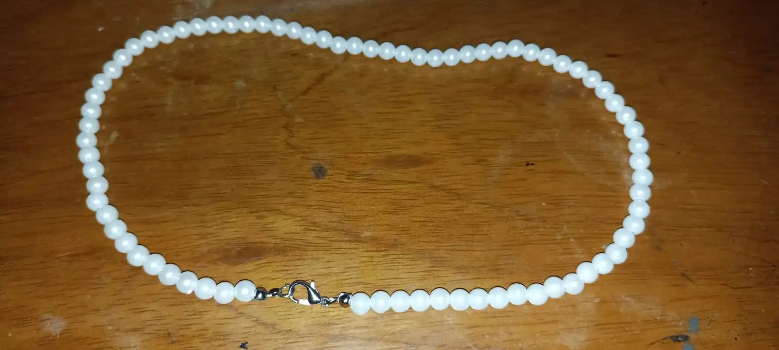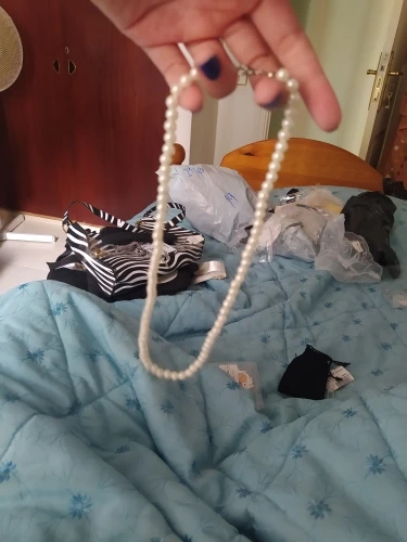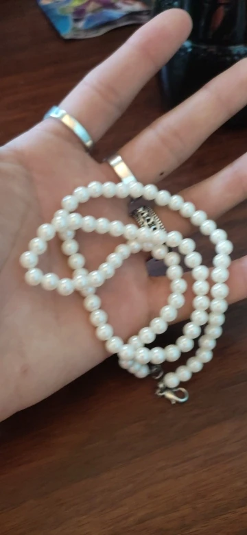 It's very nice, white, light almost doesn't weigh, if it looks like choker, the brooch is fine, came a day later, however it was fine, it looks very nice, accounts are small in my case it's nice
