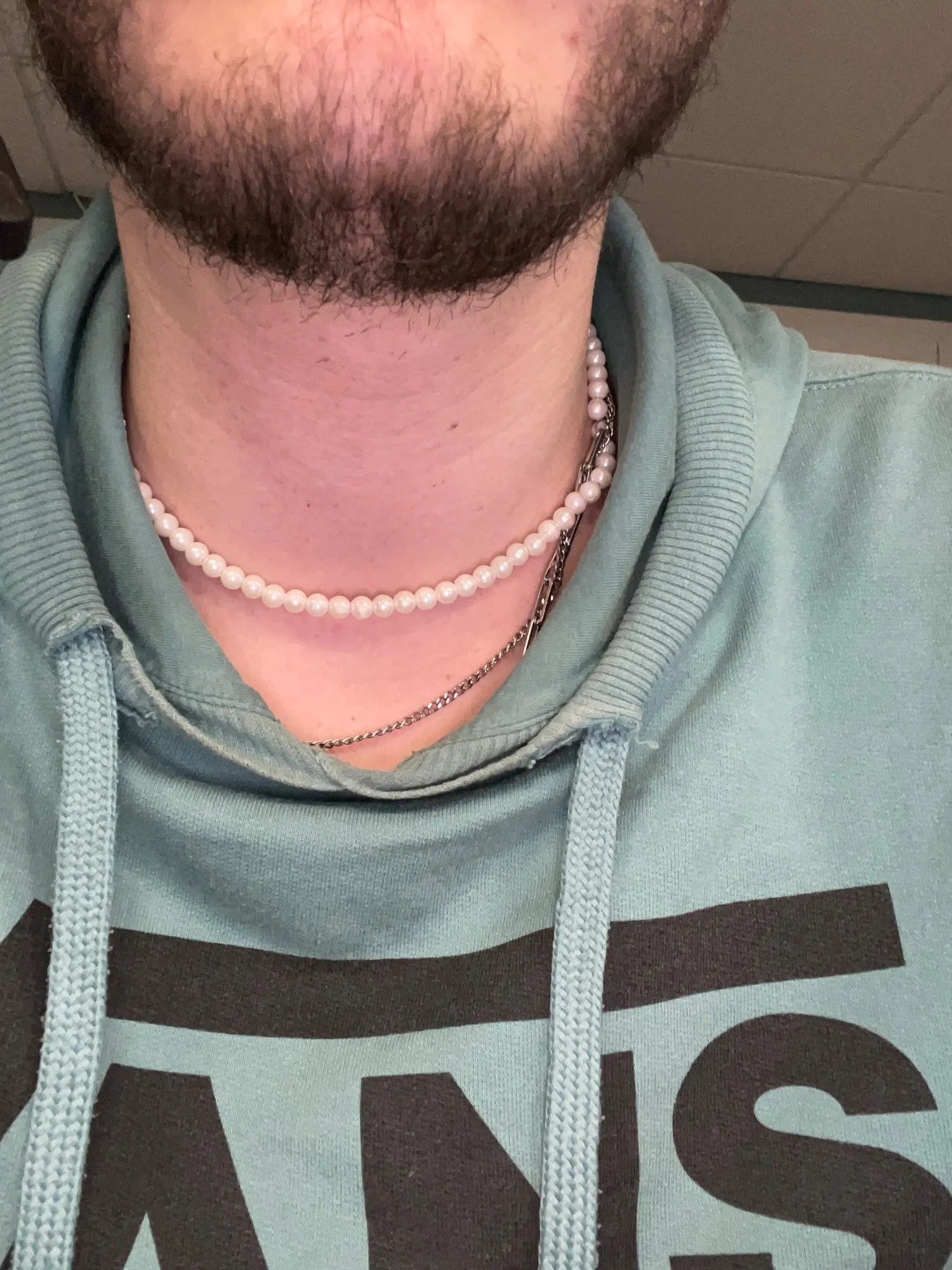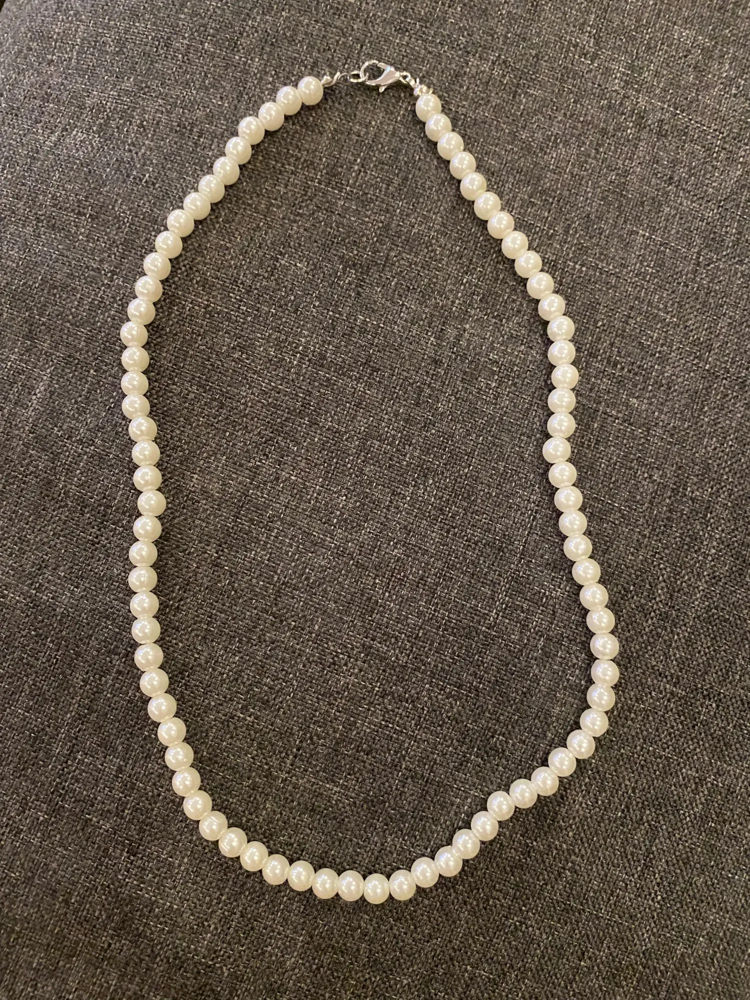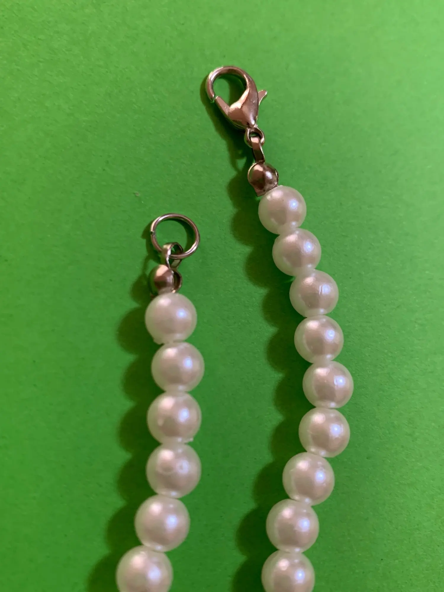It's very nice, white, light almost doesn't weigh, if it looks like choker, the brooch is fine, came a day later, however it was fine, it looks very nice, accounts are small in my case it's nice