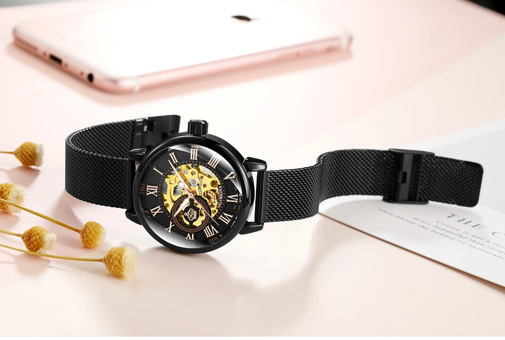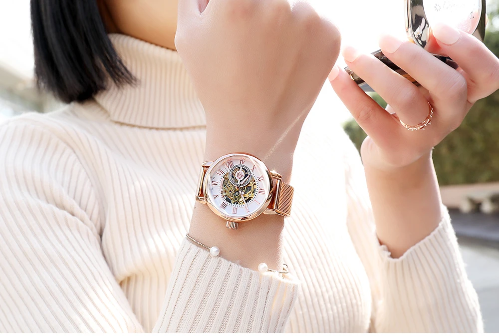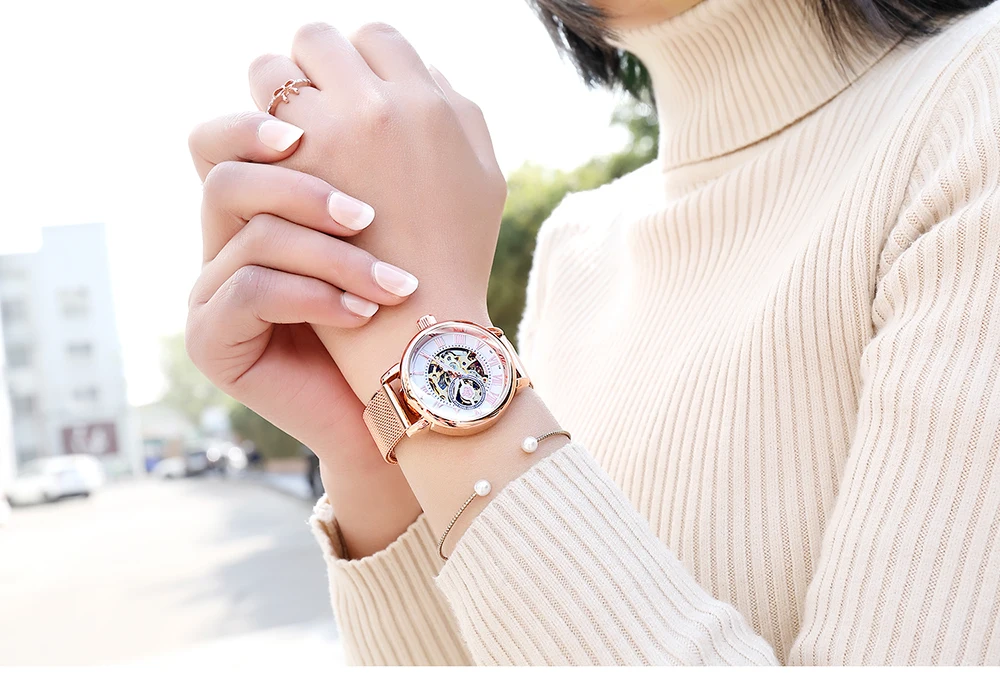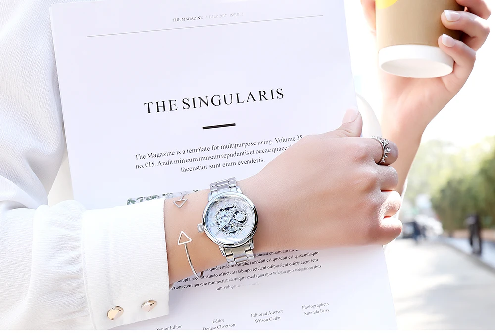 The double impression of the clock is a muddy glass .. i thought that the film. Only nothing is removed (( I wanted to adjust the bracelet-the latch is not fixed in any way. It is not possible to wear a watch. The mechanism's earned. The reverse side is also transparent-the mechanism is visible. The body is thick-pushed. Seeing live would not buy. Packed in a lot of layers of PU film. Included instruction in English.