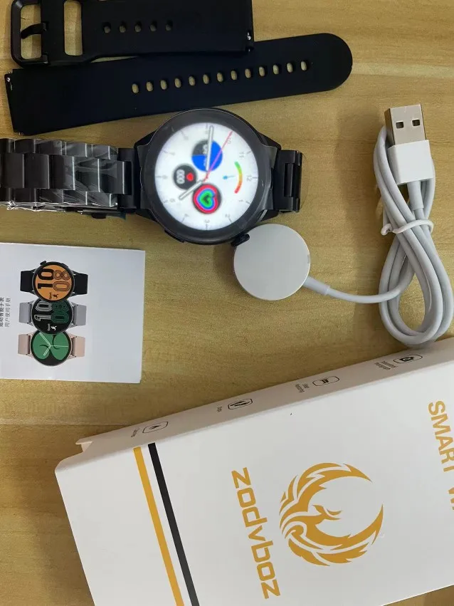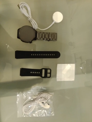 Description fully corresponds. Shipping and delivery fast. Packed perfectly. The clock is made qualitatively. Included Watch, metal bracelet, silicone bracelet, protective glass, wireless charging. As a gift, wired headphones, for smart. Connected without problems. The application is yours, everything is Russian, it is configured clearly and easily. I would like ordinary analog dials more-arrows/day/number. The measurements are correct, which even surprised. And pleased. Pulse, pressure, saturation, that's right. In general, the bucket, take definitely, the clock is quality, work well from the smart do not fall off (here probably depends on the device). The store is sociable. I advise you to take from him who is interested in this model. It's worth your money.