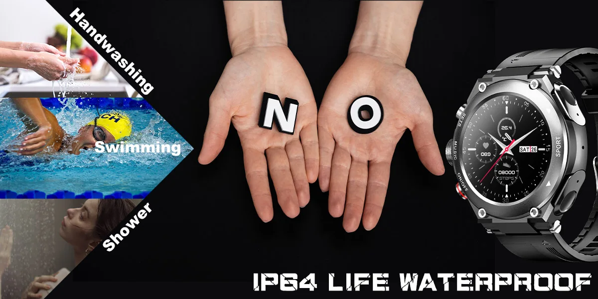 It is not recommended to wash your hands, swim, dive, take a hot bath, or take a sauna when wearing a smart watch. This will damage the smart watch.