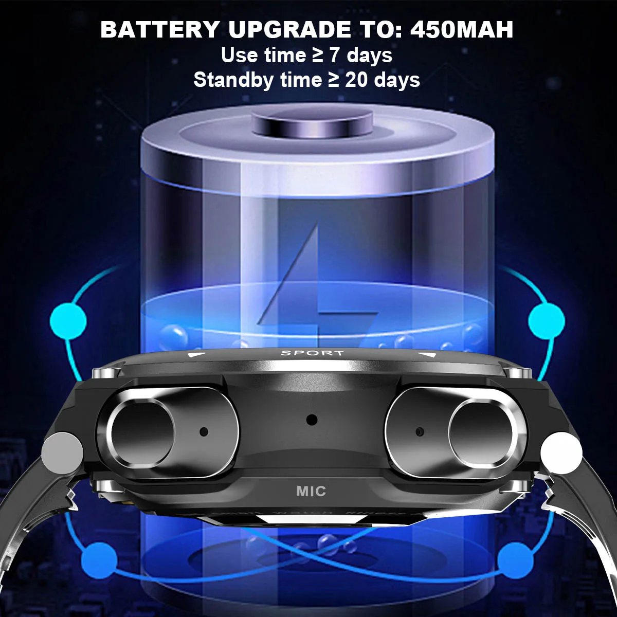 Bracelet battery: 3.7V/380mAh