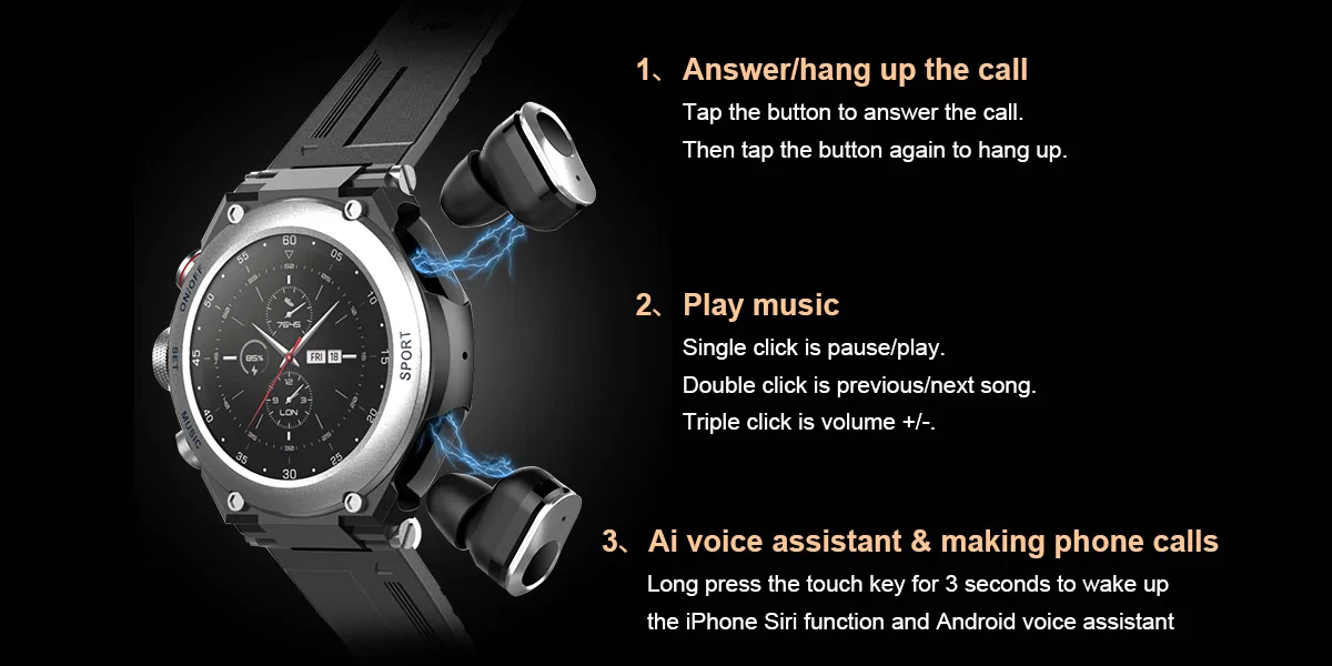 very nice gadget it it how it looks, weightless the quality is 6/10 but it delivers some of the menu options are not that grate but the speaker at the watch works very well almost as a 4 generations old cellphones speaker, a bit inconvenient in the Bluetooth connections and pairing, blood pressure, oxygen level sensor, hard beat, temperature functions are fine im not sure how accurate but its not live view display, more like a screen animation but it works, ear buts work very nice loud and very clear microphone crisp and loud, the touch part of the very very tiny ear buts is very sensitive and hard to operate since is too small having the ear been in your way, the taping options on the ear buds is a bit annoying ado may be customizable its nice but not a serious watch more like a kids gadget but im very happy with it at this price its worth it