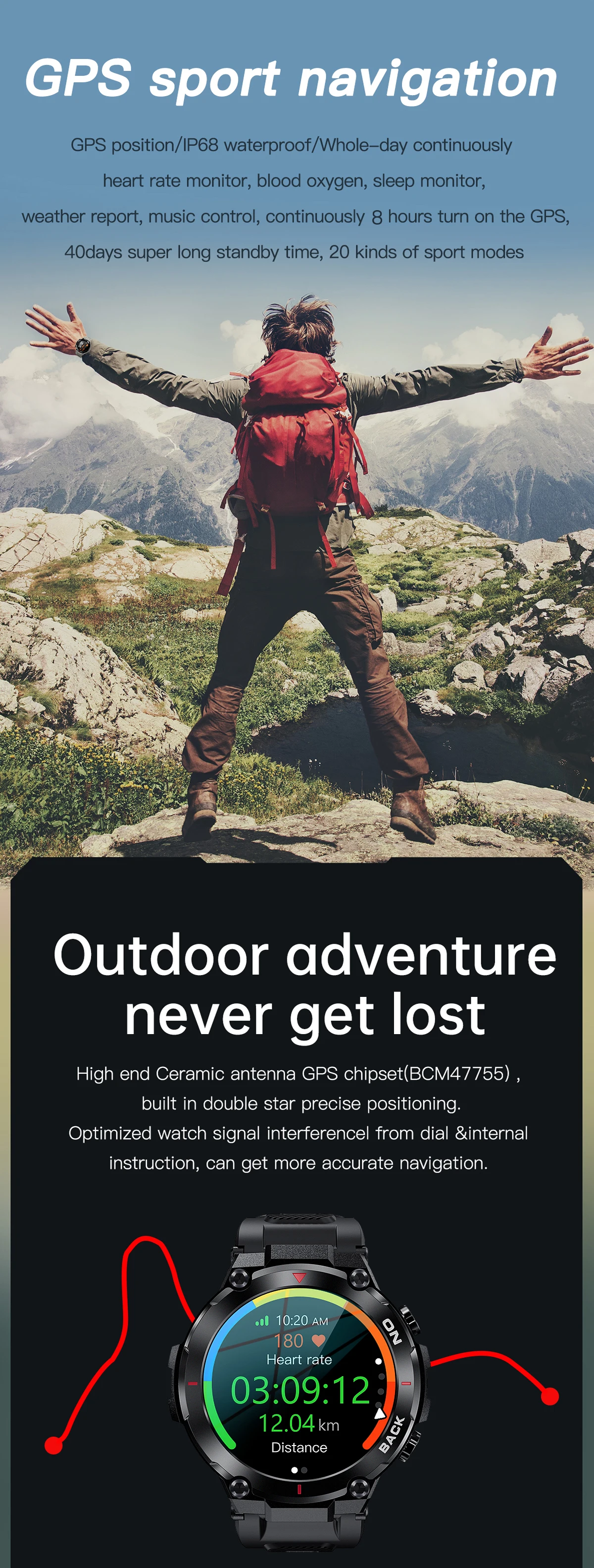 This is a watch that is perfect for my sports needs. Sports Watch mode records my sports data and GPS location route. When I come home, I can connect my phone to see my route in motion. Battery is OK, everything else is OK. The goods arrived 15 days before the estimated date. Recommend!
