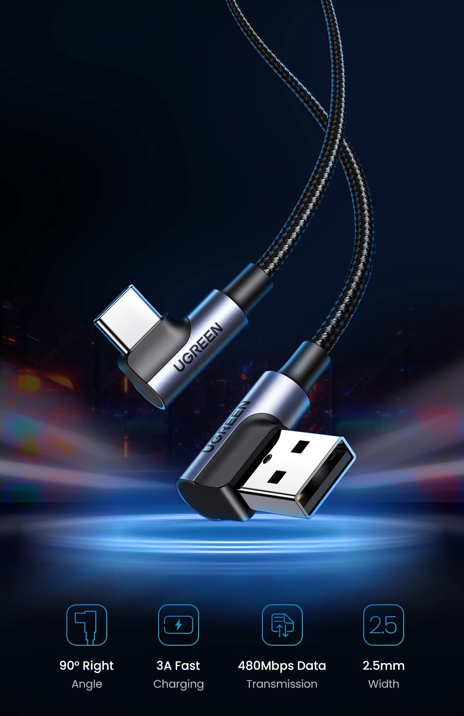 90°USB C Charging Cable