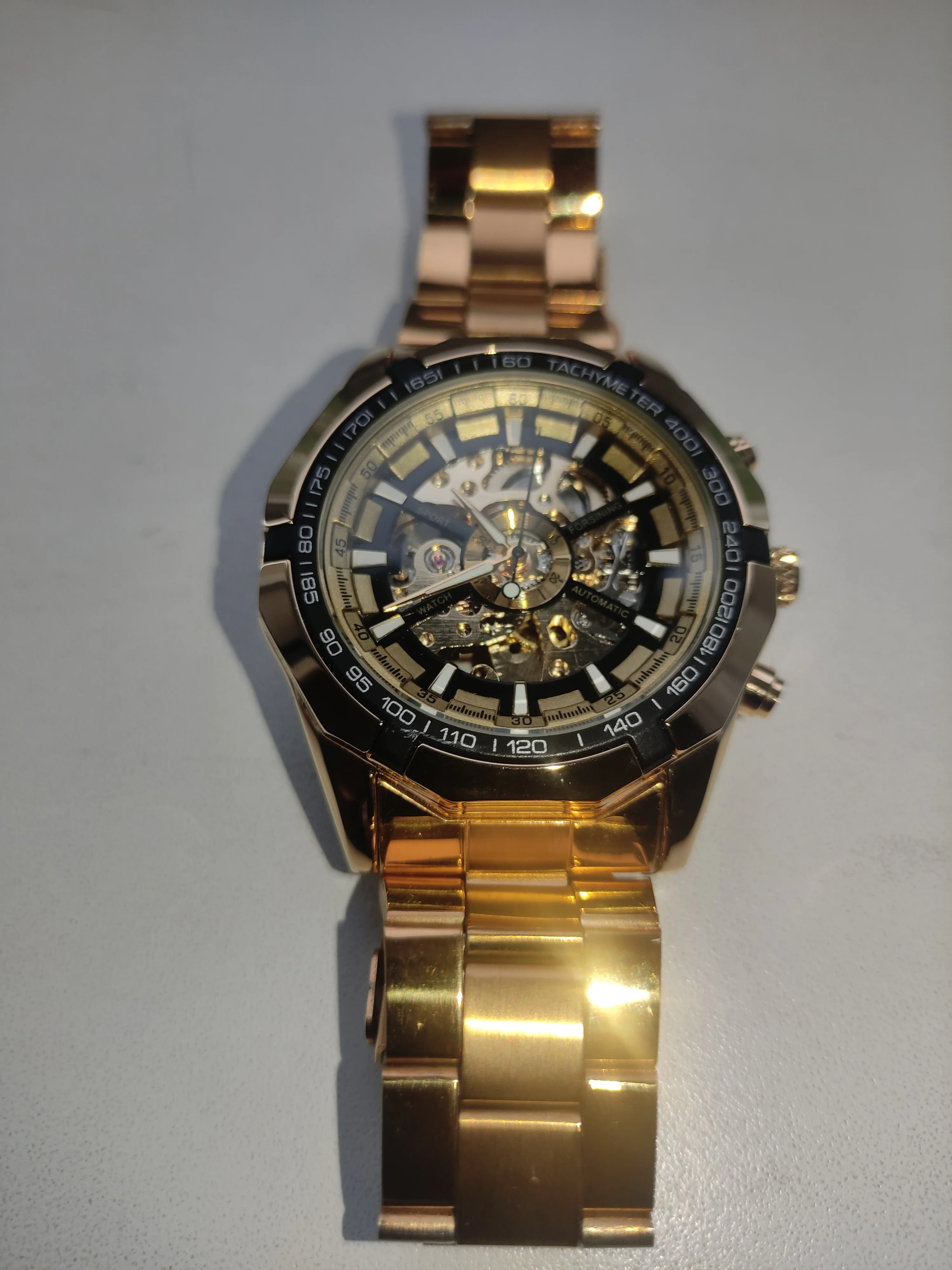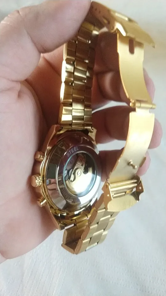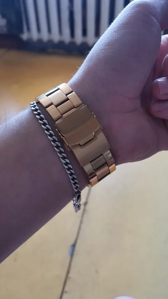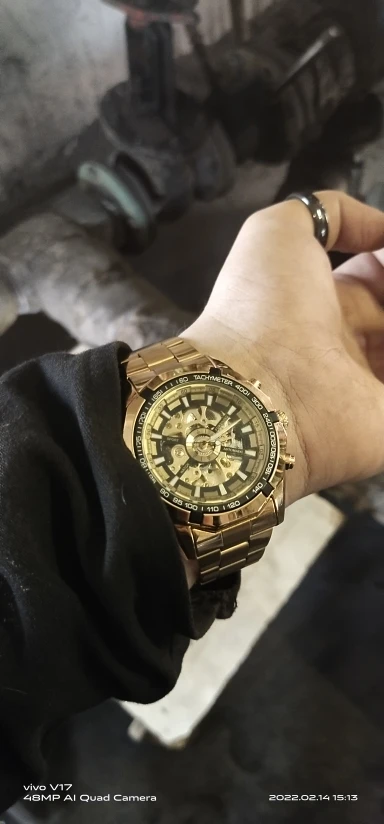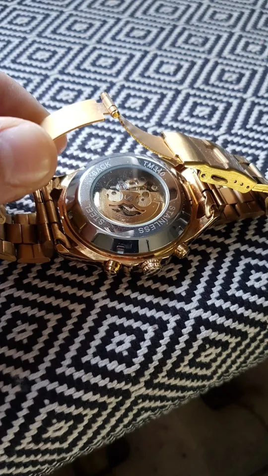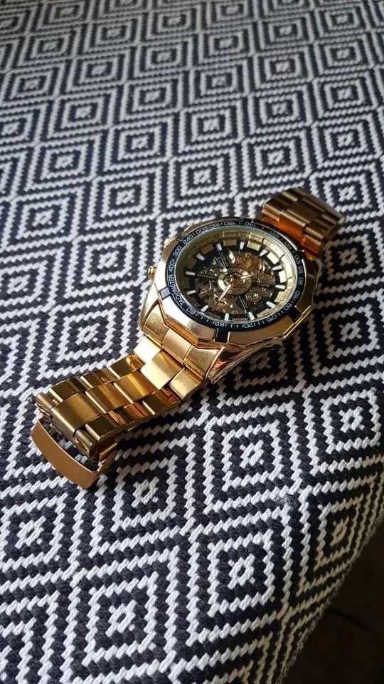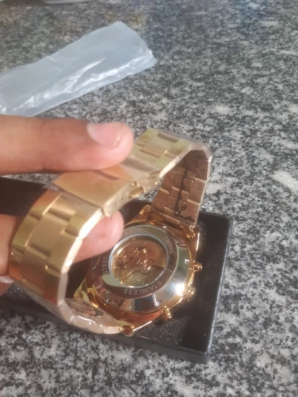 The watch is very beautiful and is working well, only the strap found a little weak, hope the golden color not fade.