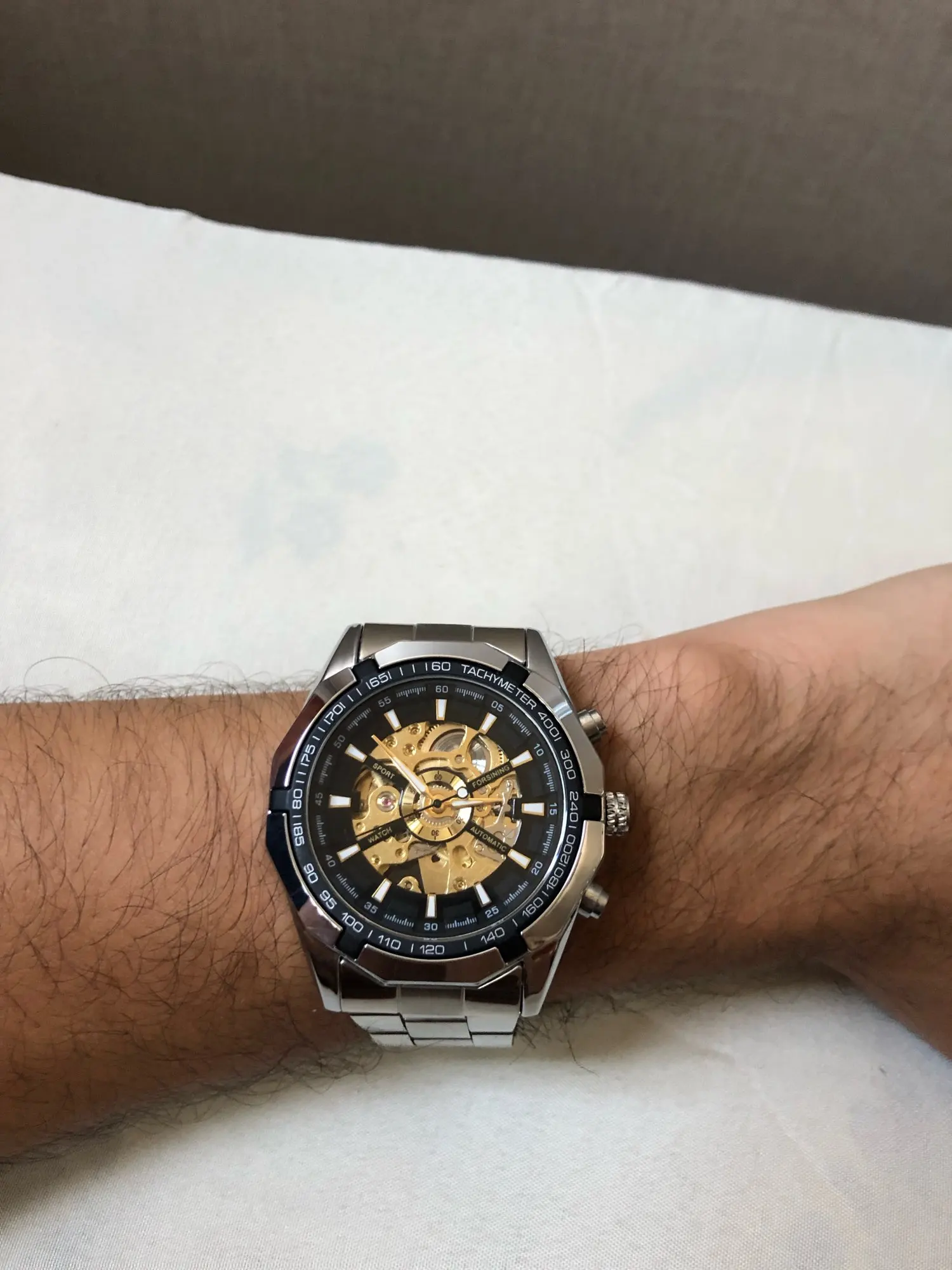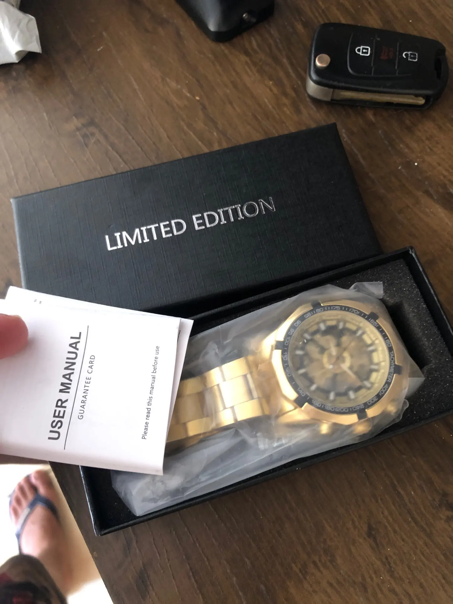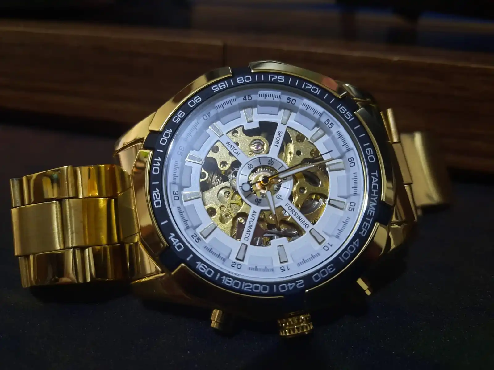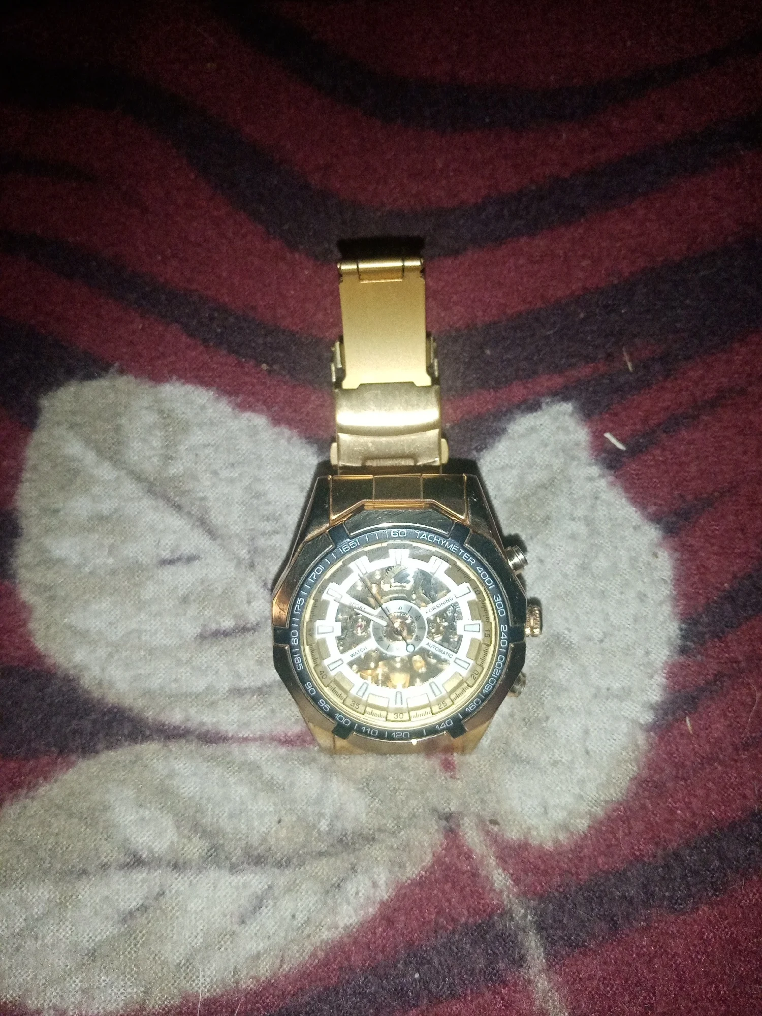 The watch is very beautiful and is working well, only the strap found a little weak, hope the golden color not fade.