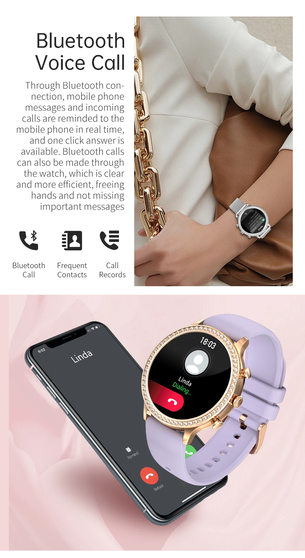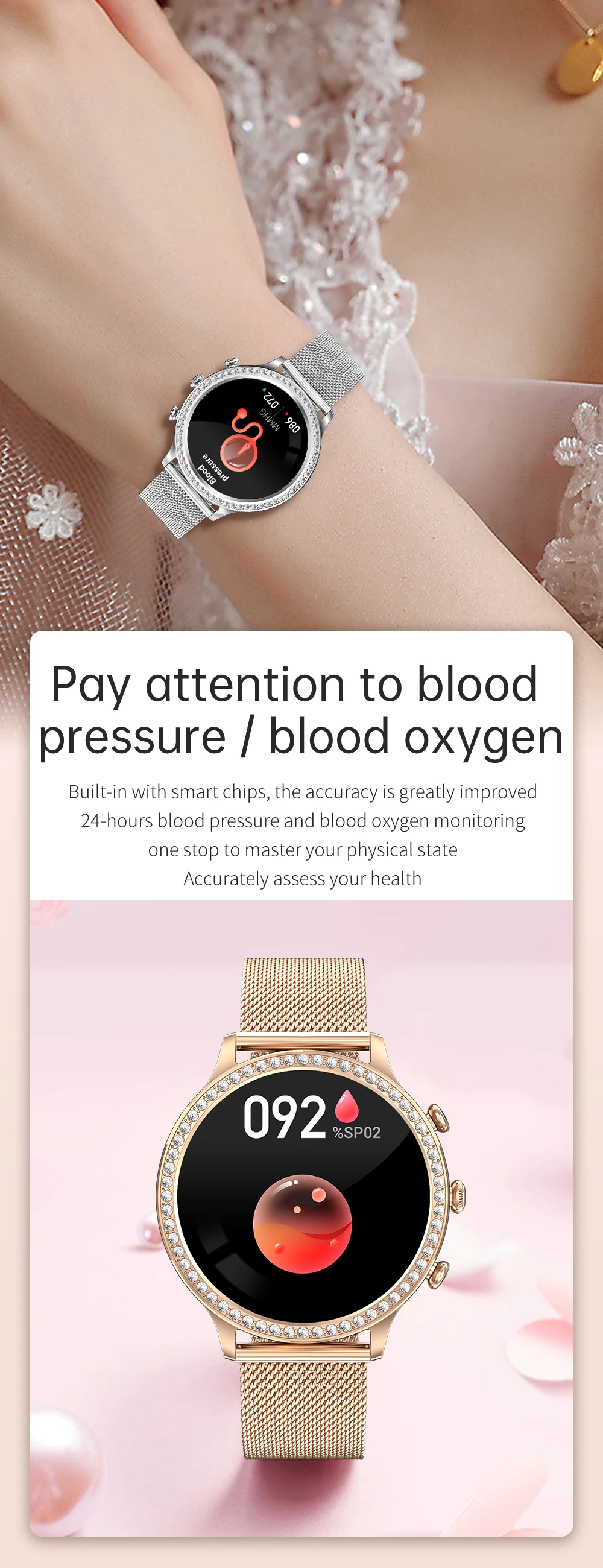 AMOLED Diamond Bluetooth Call Blood Pressure Oxygen Smart Watch