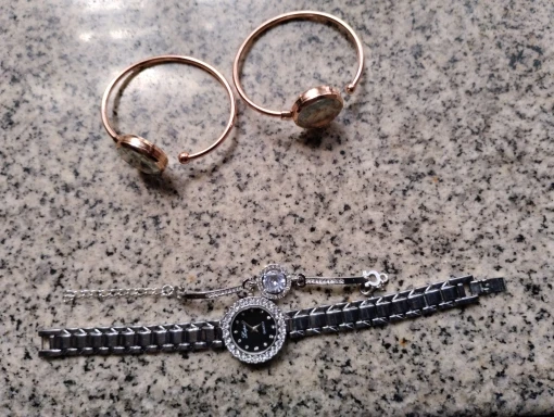 Lovely pieces,same as described.Just a little variation in the colour of face of the watch.Good quality,looks n feels durable,just hope it doesn't fade.Welldone store.