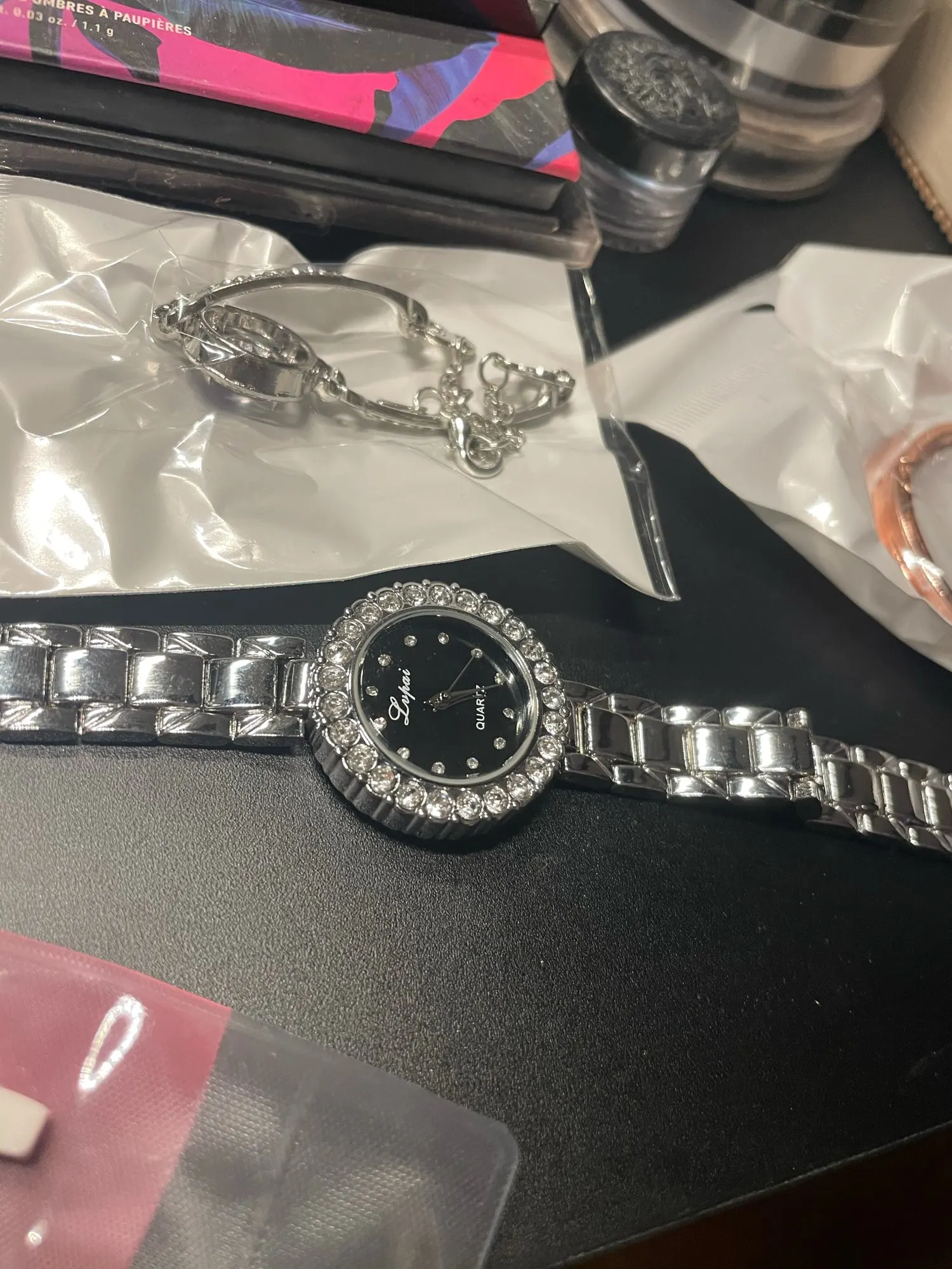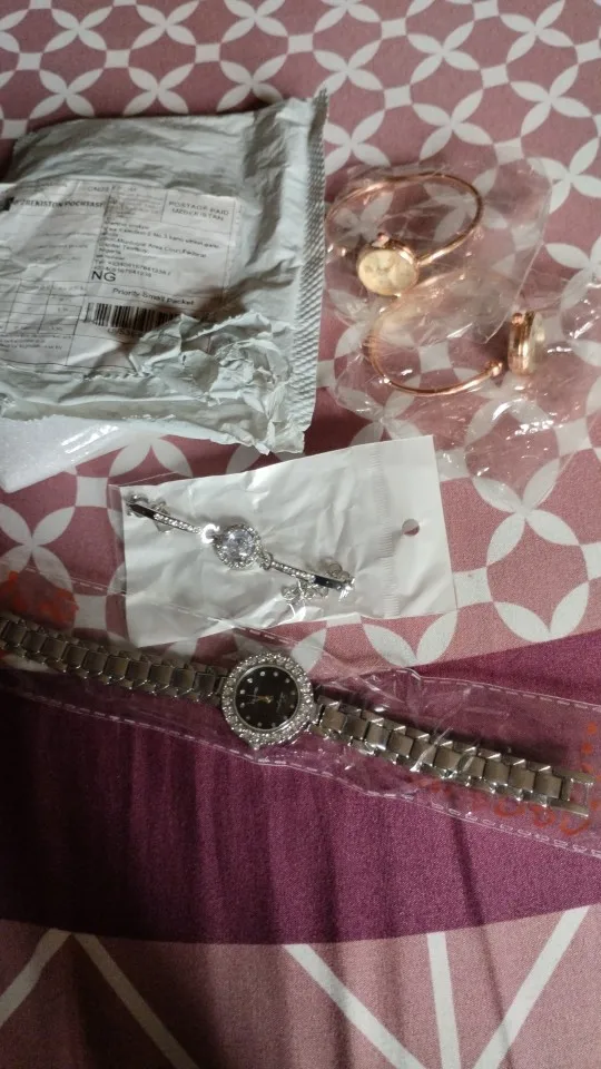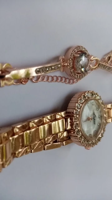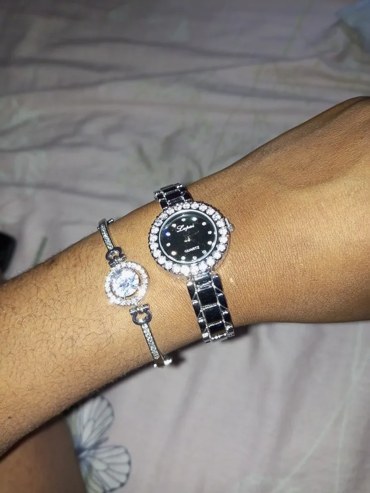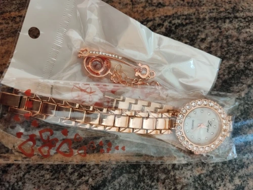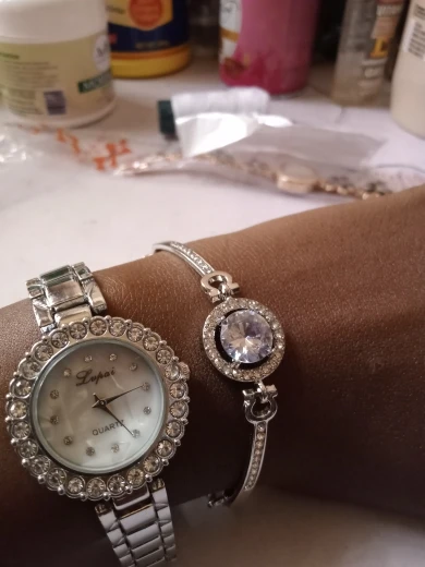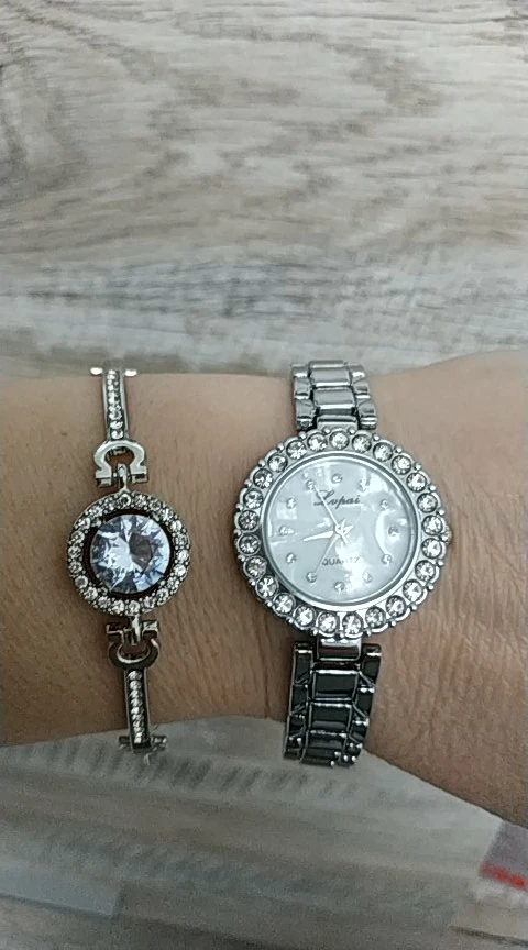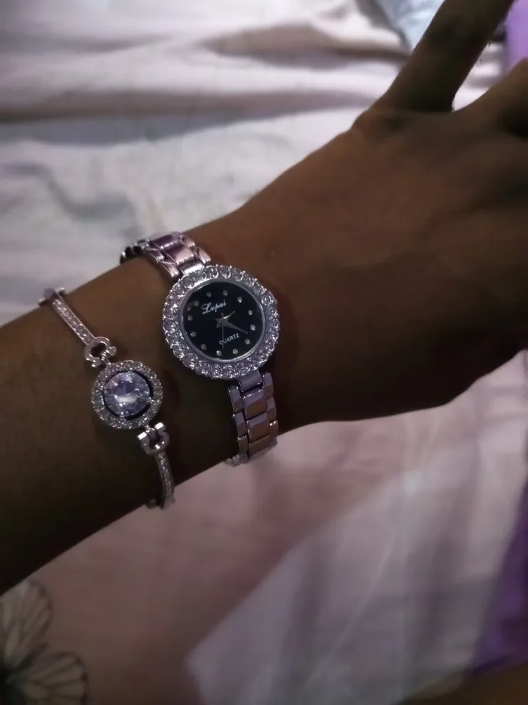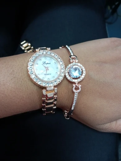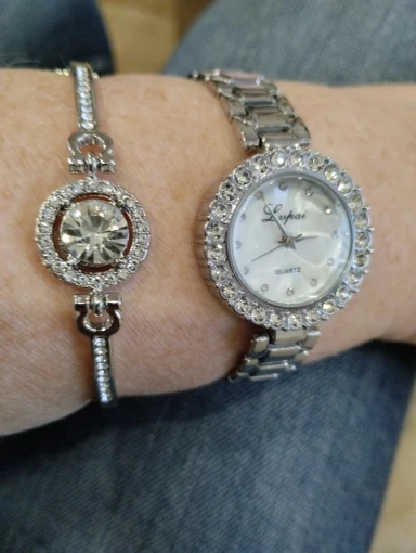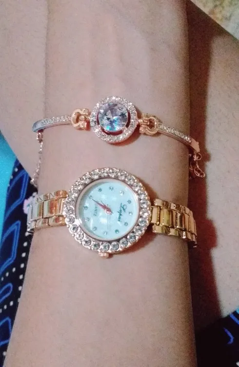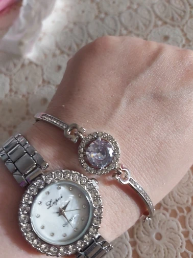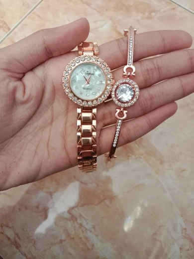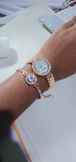 Wristwatch and bracelet arrived so fast, extremely beautiful and glittery. I'm so happy with this product.