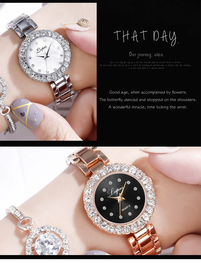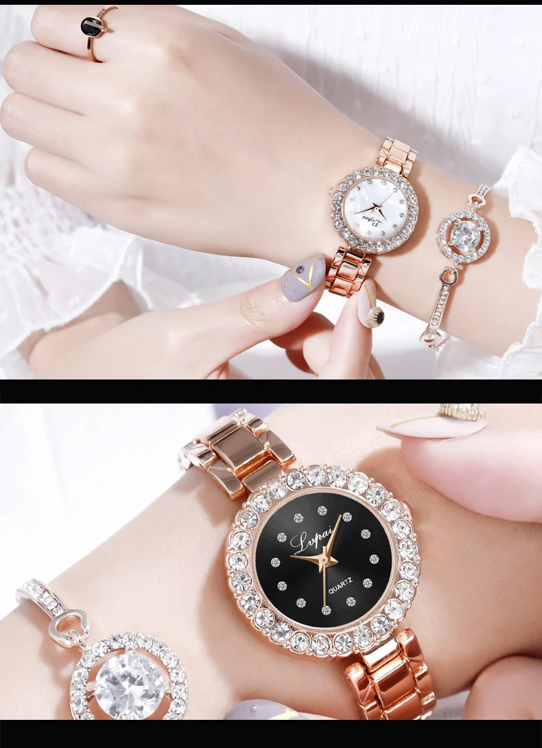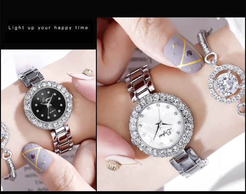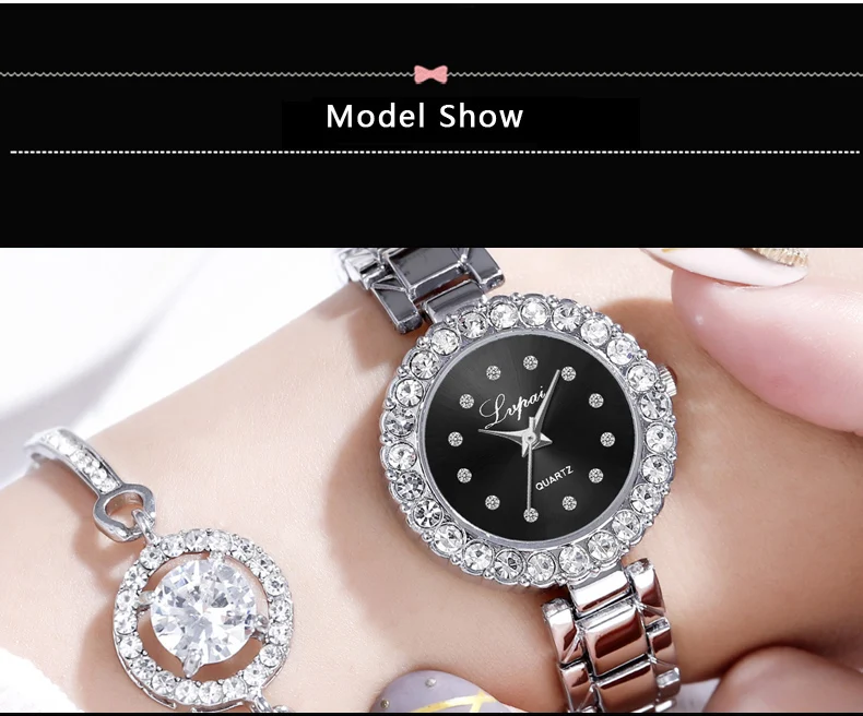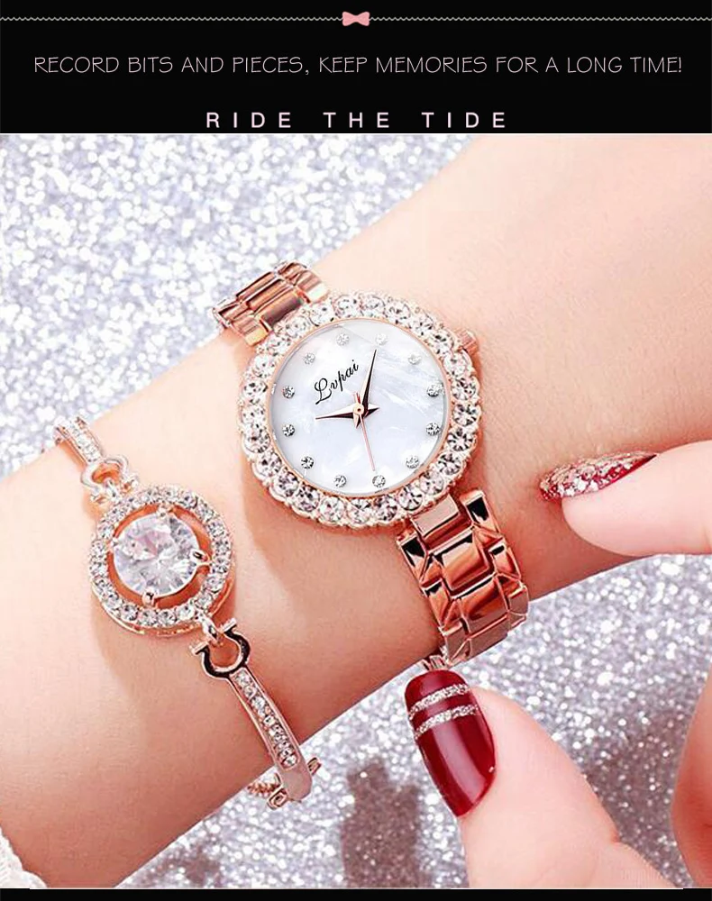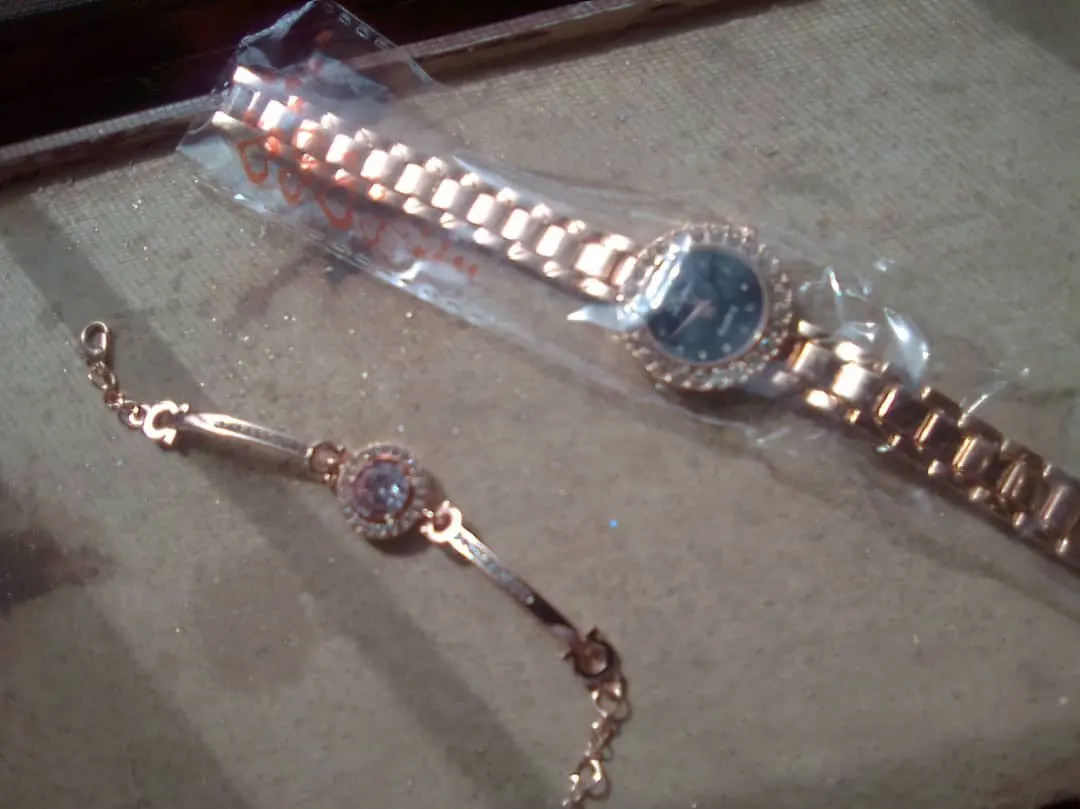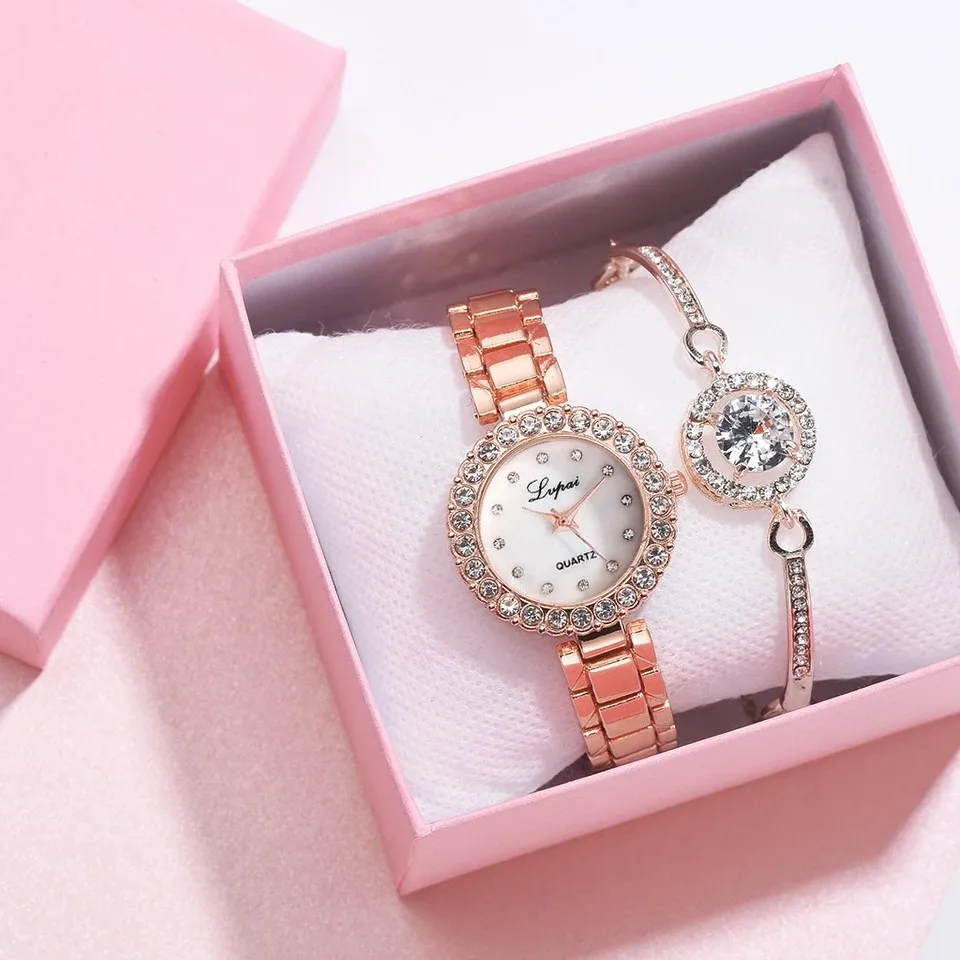 Wristwatch and bracelet arrived so fast, extremely beautiful and glittery. I'm so happy with this product.