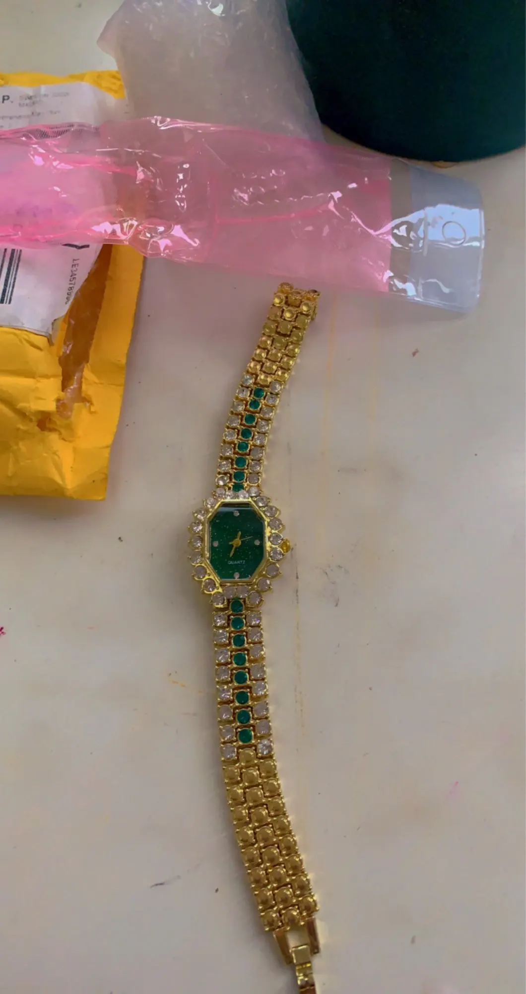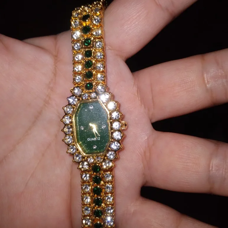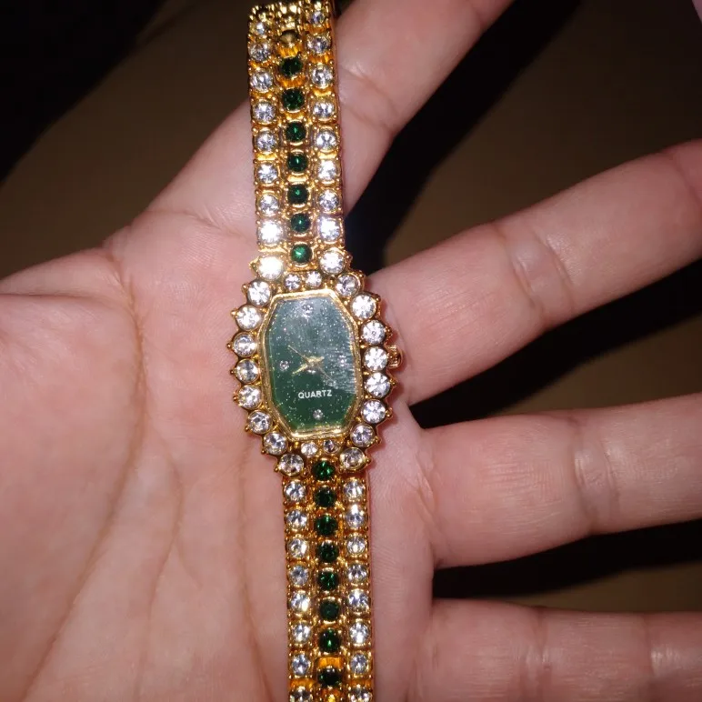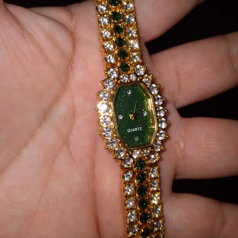 Photo is the same. A green color product and the watch is working. It looks aesthetically beautiful and also elegant. The product arrived at my home address in 10 days. Thank you very much to store. Because he sent it quickly.